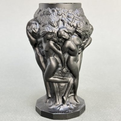 Ваза Вакханки в стиле Артдеко из черного стекла дизайн 1930г. Г. Хоффманн Чехия 21 в