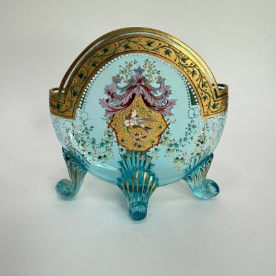 Мелочница в стиле Артдеко вазелиновое урановое стекло коллекция Ингрид дизайн 1930г. Г. Хоффманн Чехия 21 в