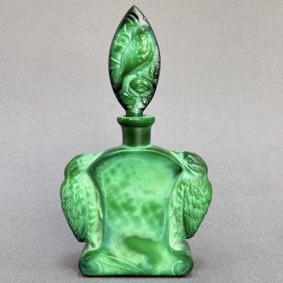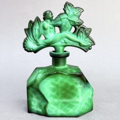 Парфюмерный флакон в стиле Артдеко из малахитового стекла дизайн 1930г. Г. Хоффманн Чехия 21 в