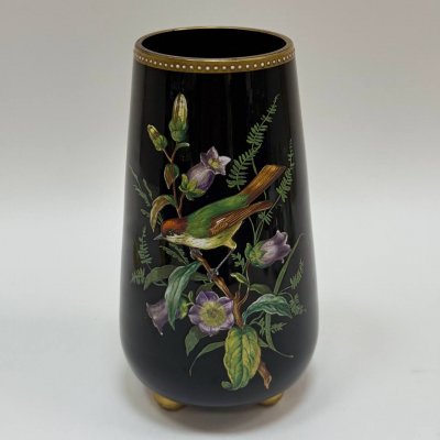 Старинная редкая ваза из гиалитового черного стекла Мозер Чехословакия 1922 год