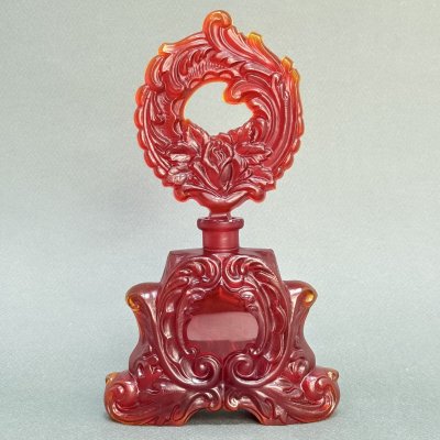 Парфюмерный флакон в стиле Артдеко из красного стекла дизайн 1930г. Г. Хоффманн Чехия 21 в