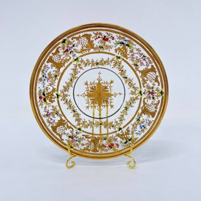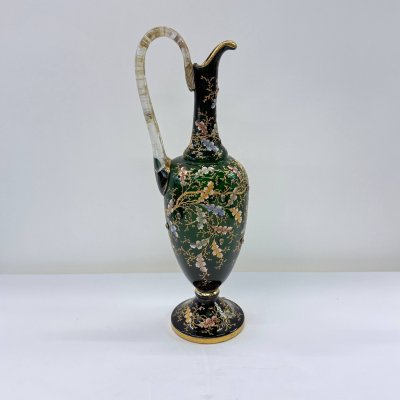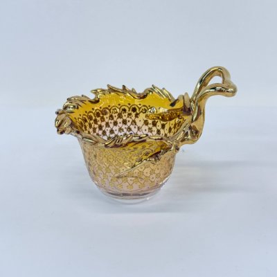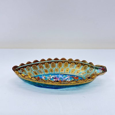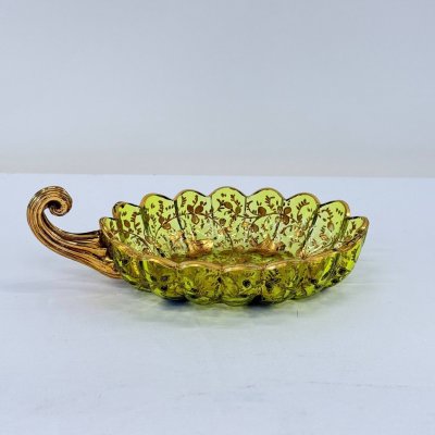 Старинная богемская эмалированная тарелка в форме раковины из рубинового стекла