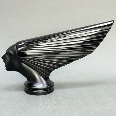 Коллекционная статуэтка-маскот Victoire ( Виктуар – дух ветра ) для Delage D8 в стиле Артдеко черное стекло модель Г.Хоффманн 1930е г Чехия 21