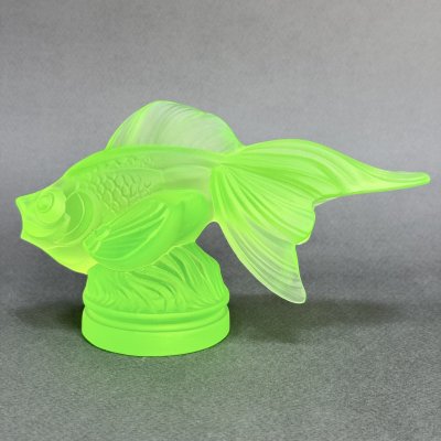 Коллекционная статуэтка Gold Fish из вазелинового уранового стекла дизайн 1930г. Г. Хоффманн Чехия 21 в