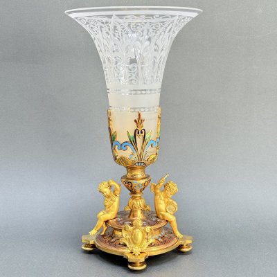 Парные хрустальные вазы на бронзовых основаниях Франция 1900 гг