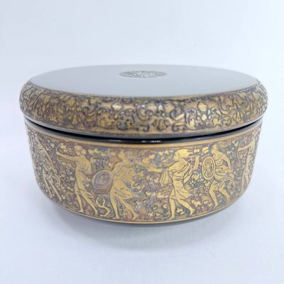 Шкатулка с латунной крышкой с изображением Богини цветов Хлорис стекло 1900гг Франция