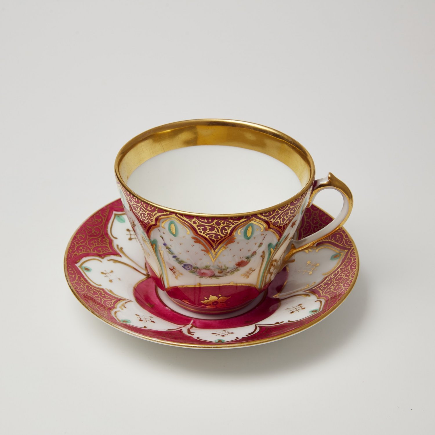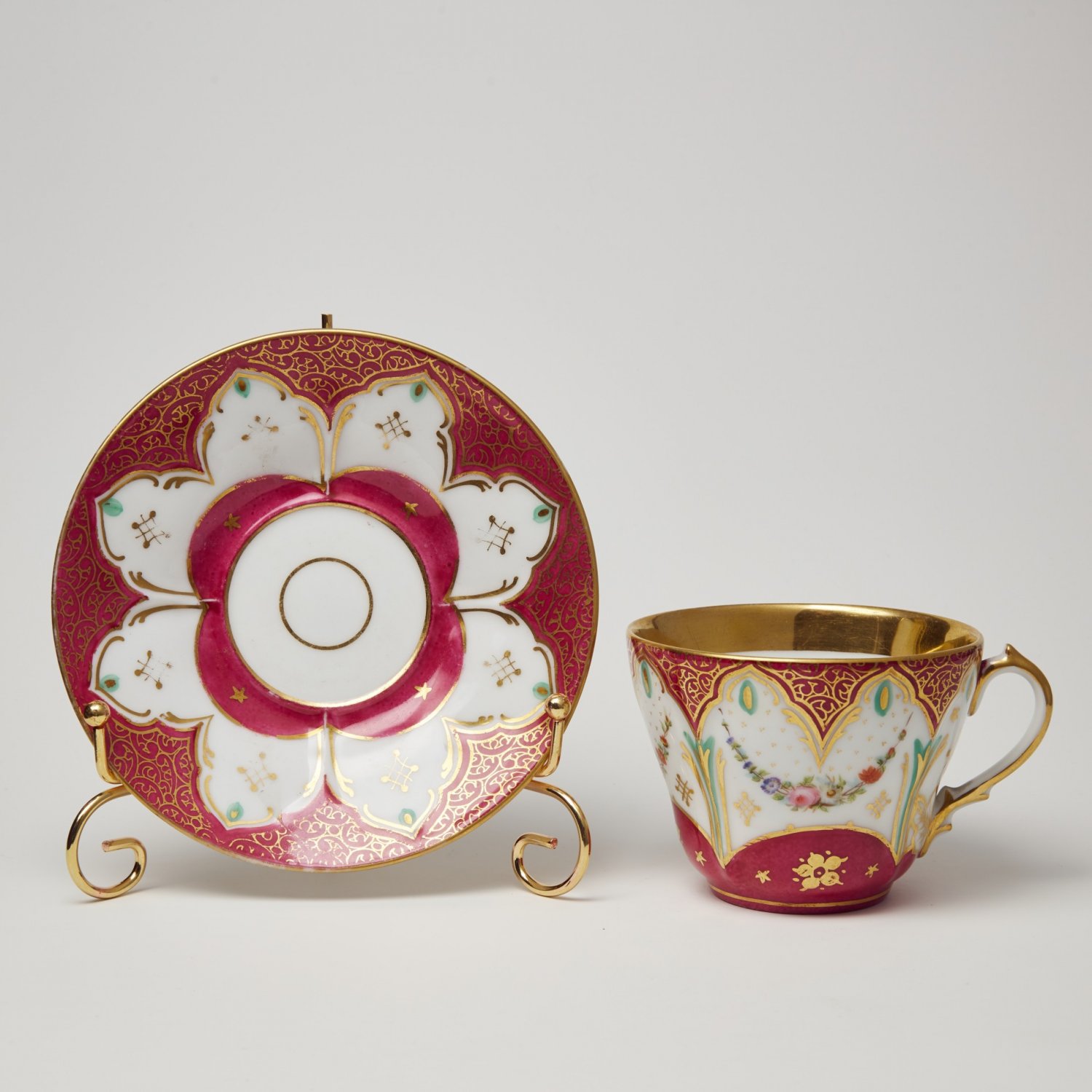 Чашка для кофе с блюдцем форма литрон Франция конец 19 века