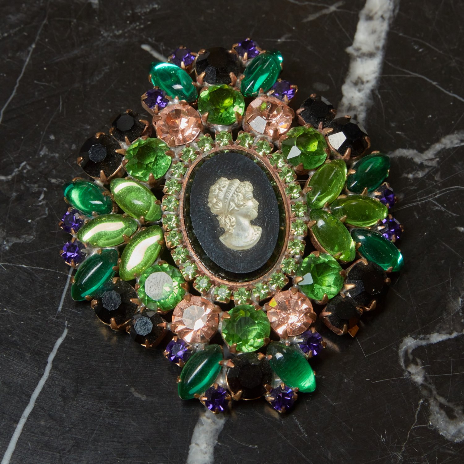 Брошь овальная старинная с камнями-цветами под бирюзу (д)