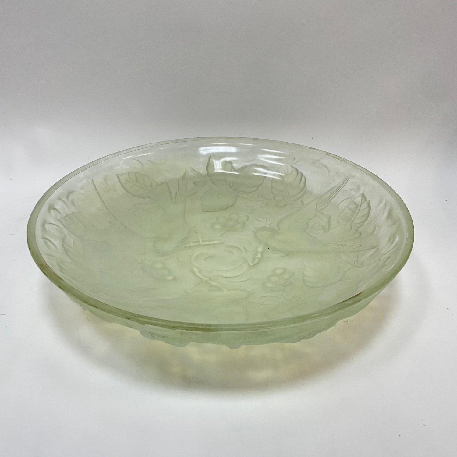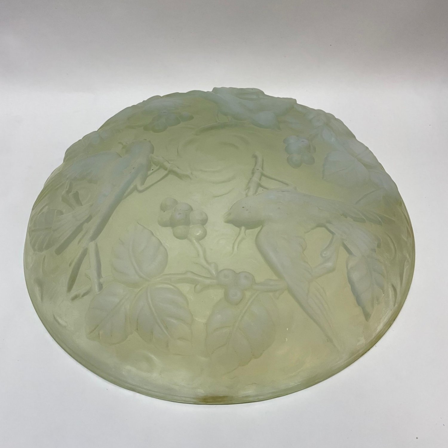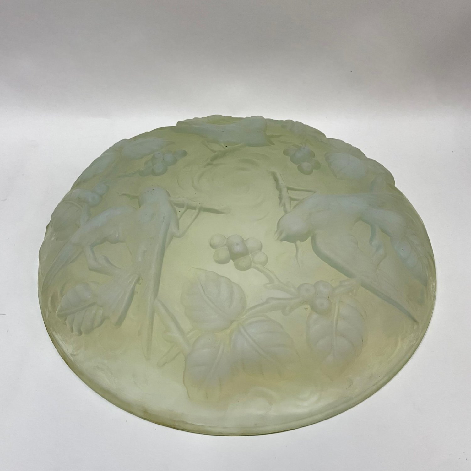 Большое блюдо в стиле Арт-деко, Франция 1920 гг, стекло опалесцирующее, с птицами, веточками, ягодами и листочками