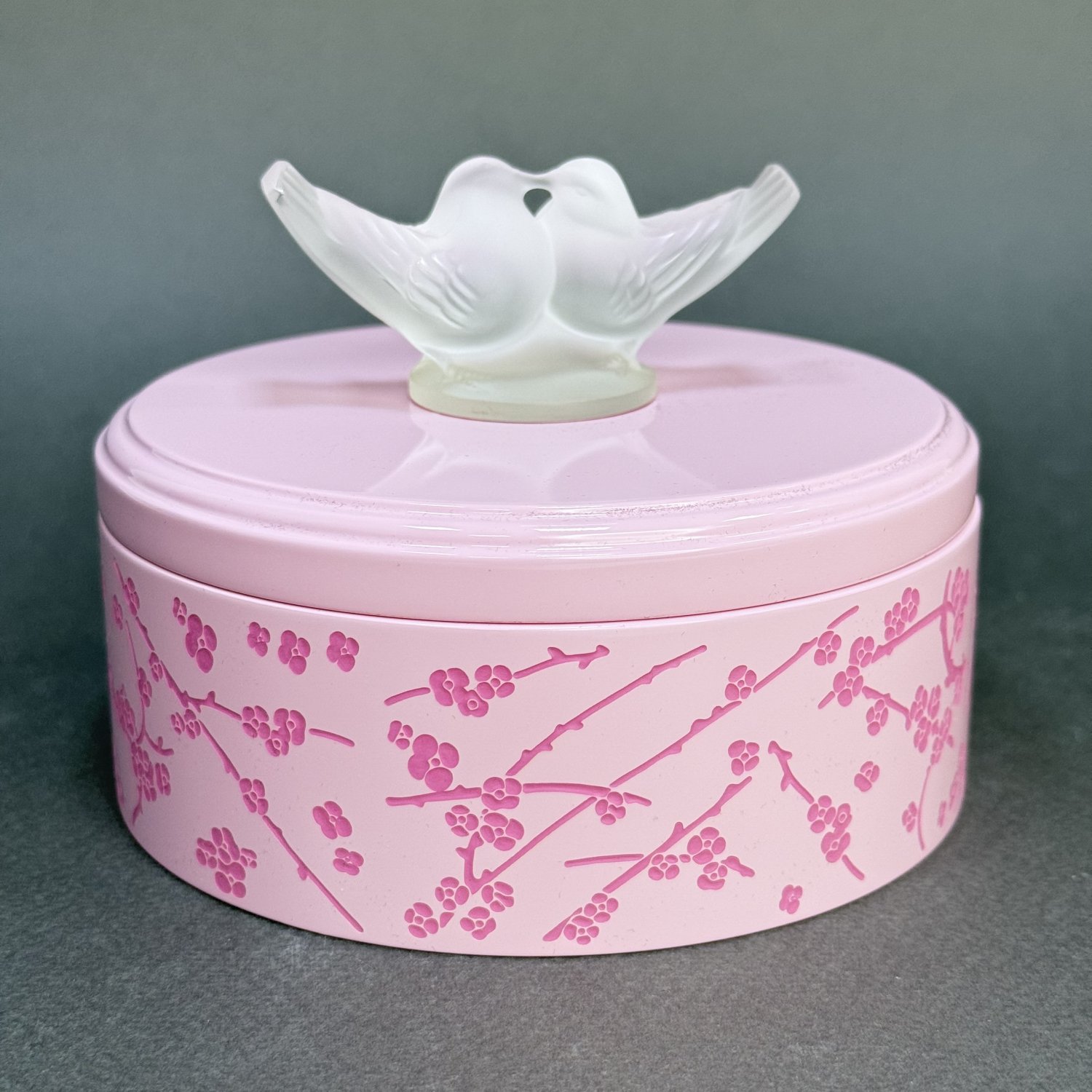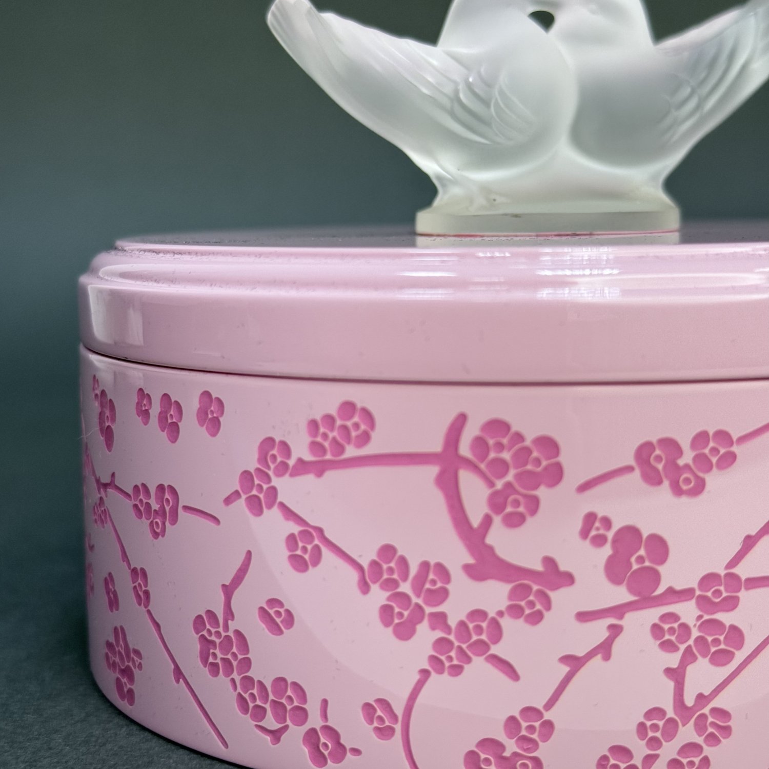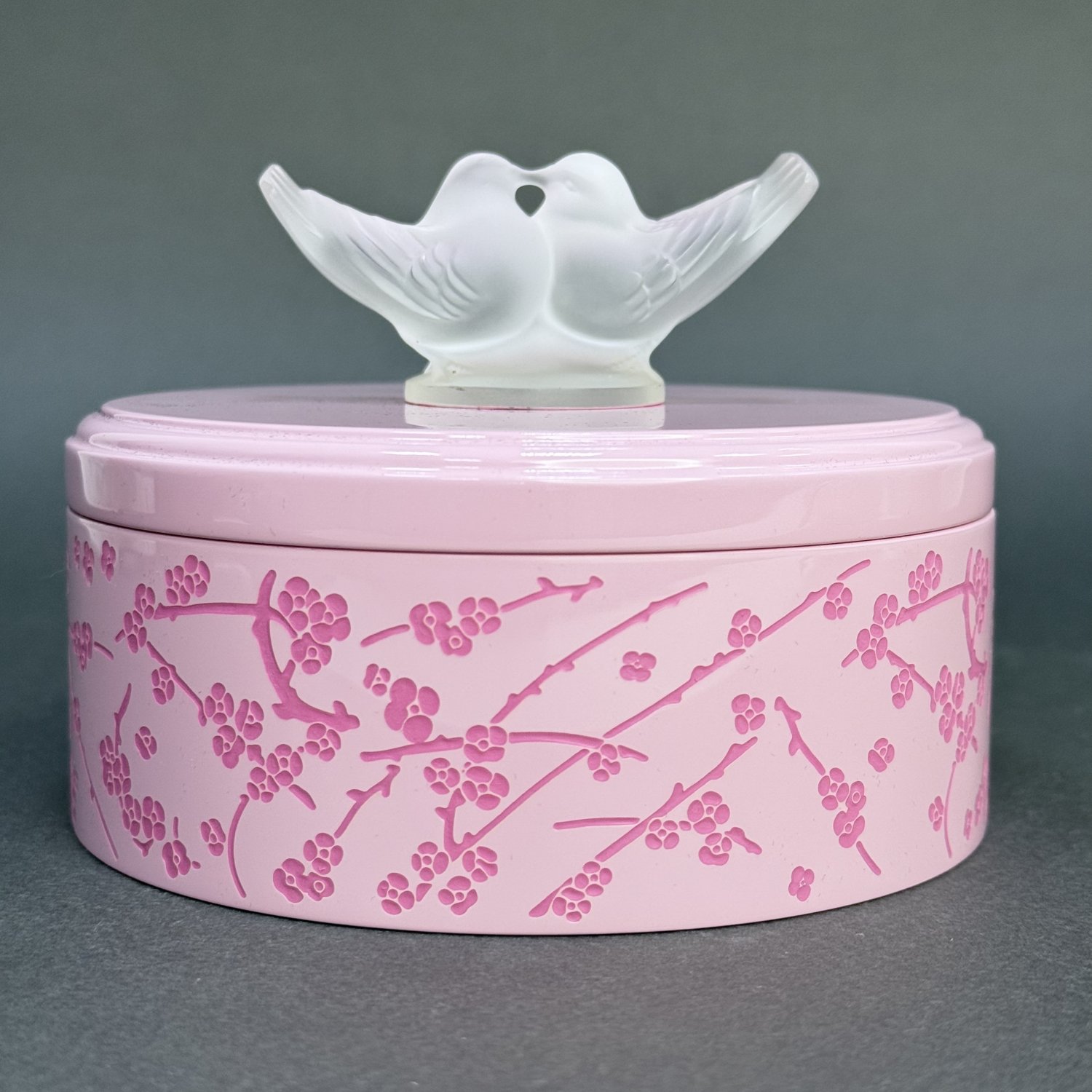 Шкатулка Lalique Fleurs de cerisier ( Цветущая вишня ) с птичками розовая размер S Франция 2025 г. Великолепное сочетание двух материалов: лакированного дерева и хрусталя. Прозрачный хрусталь, розовое и малиновое лакированное дерево. Размеры: высота 9 см, диаметр 12,7 см.