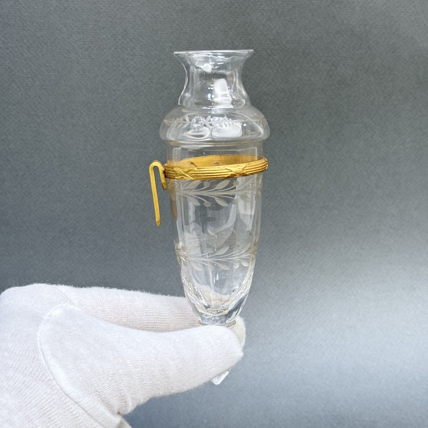 Вазочка для цветов для раритетных авто Baccarat Франция, 1900 г, Хрусталь, бронза. Размеры: высота 14,7 см, диаметр тулова 4,5 см, диаметр горловины 3,3 см