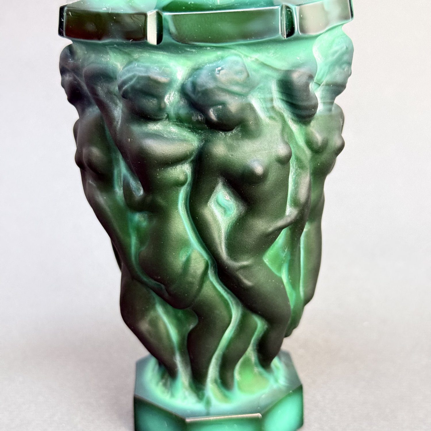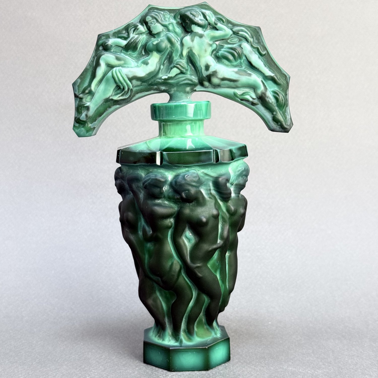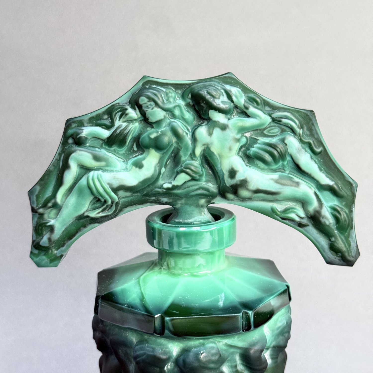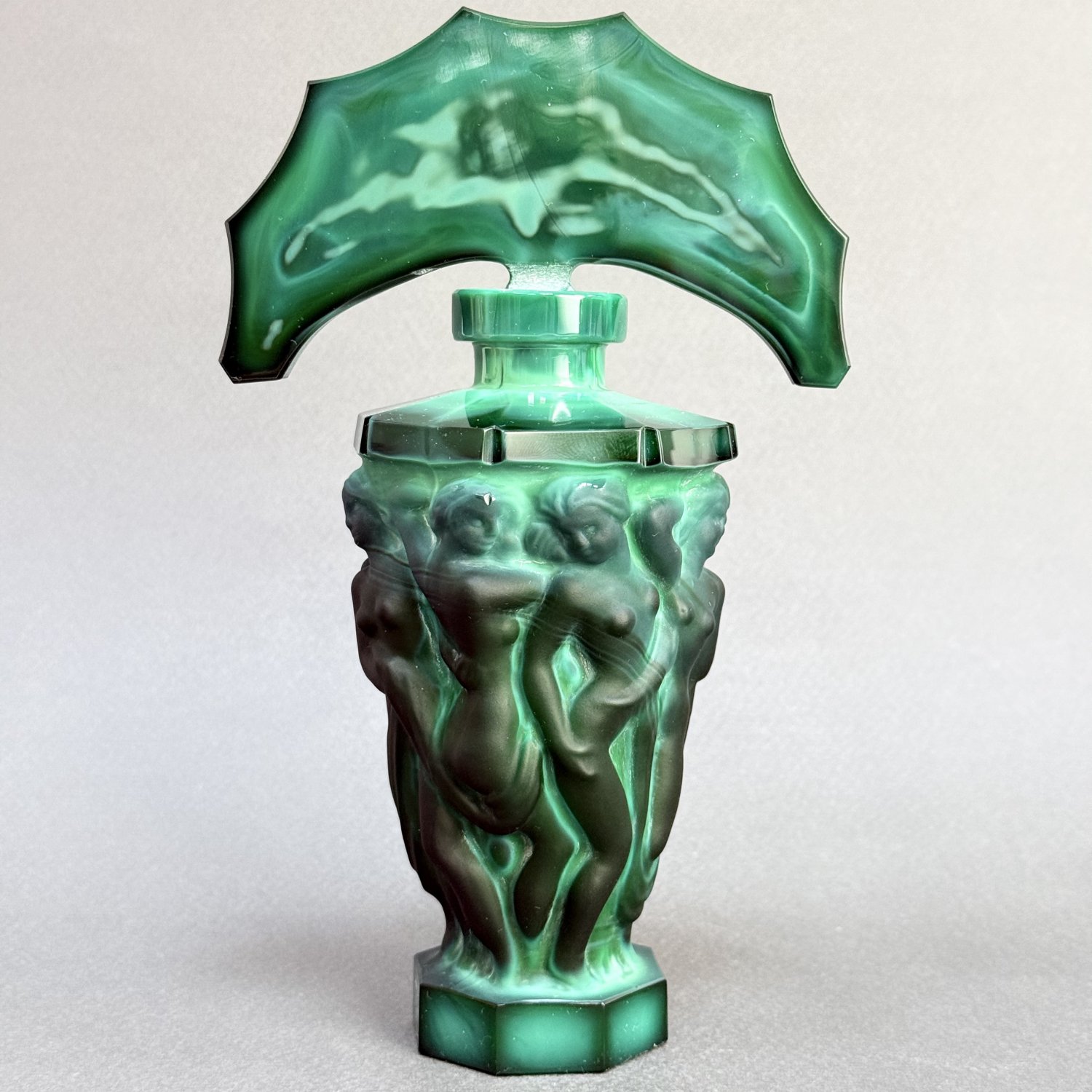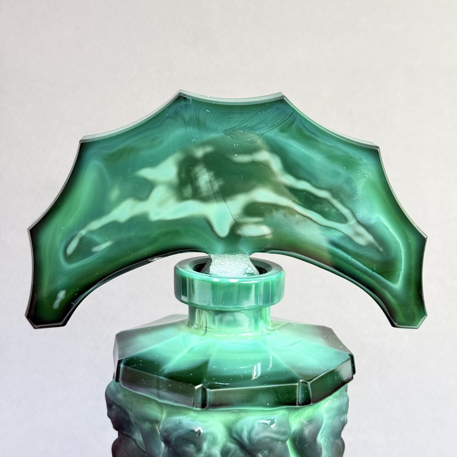 Коллекционный Парфюмерный флакон в стиле Артдеко малахитовое стекло 21 век дизайн Н.Ноffmann Чехия 21 в. Размер: высота 18 см, диаметр 7 см.