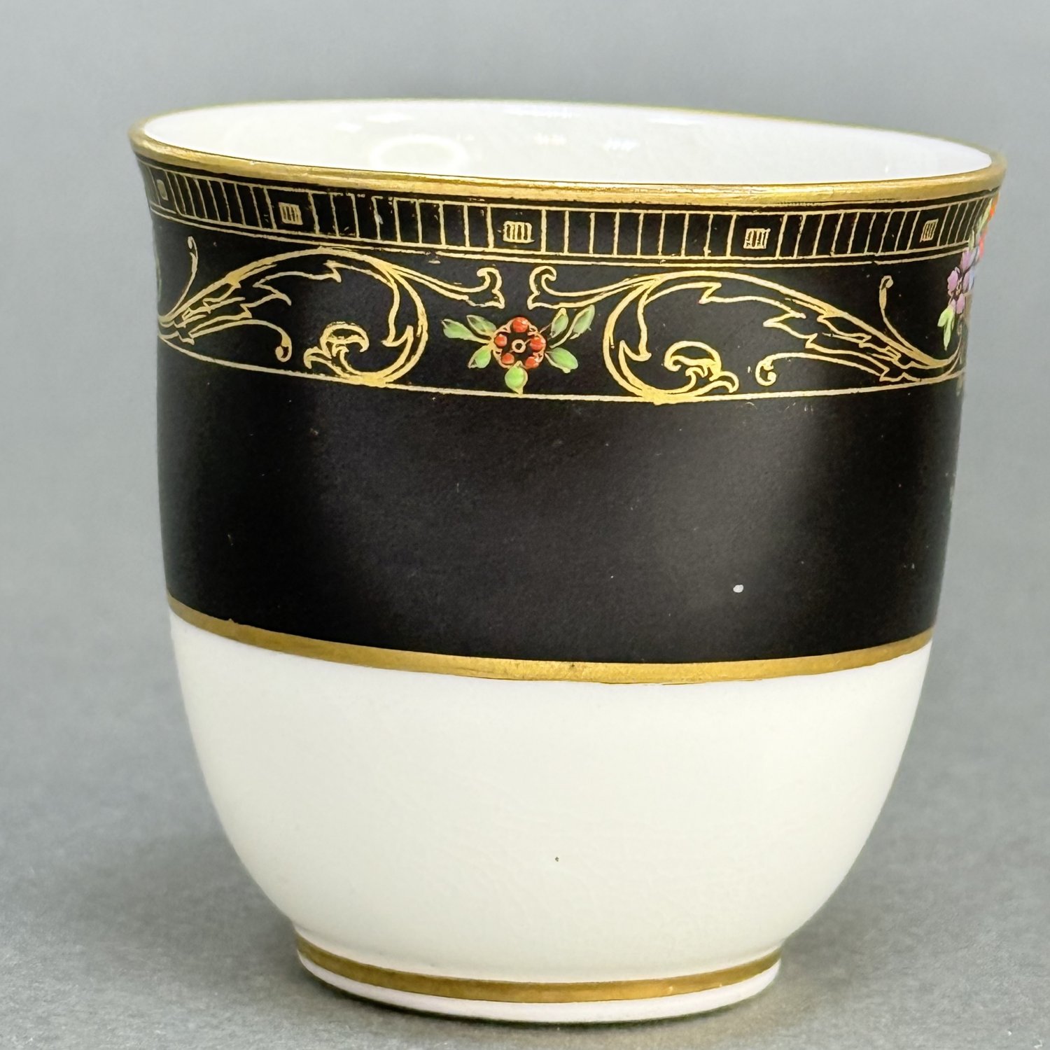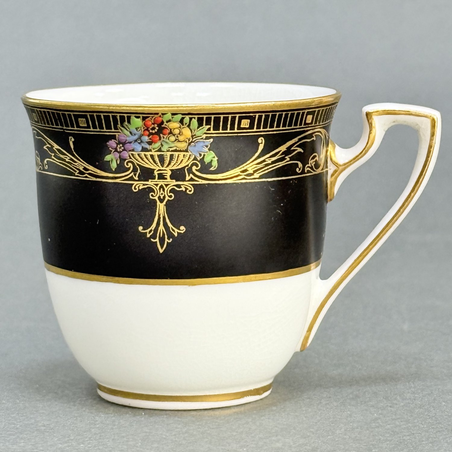 Двойной провенанс Редкий набор Royal Worcester (1920 гг.) с двойной маркировкой: клеймом мануфактуры и эксклюзивного дистрибьютора - Marshall Field's (Чикаго). Художественные особенности: глубокая чёрная глазурь, роскошная позолота, цветочная роспись эмалями. Размеры (чашка 50 мл) соответствуют канонам кофейного этикета межвоенного периода. Каждый элемент набора отражает эстетику "ревущих двадцатых".