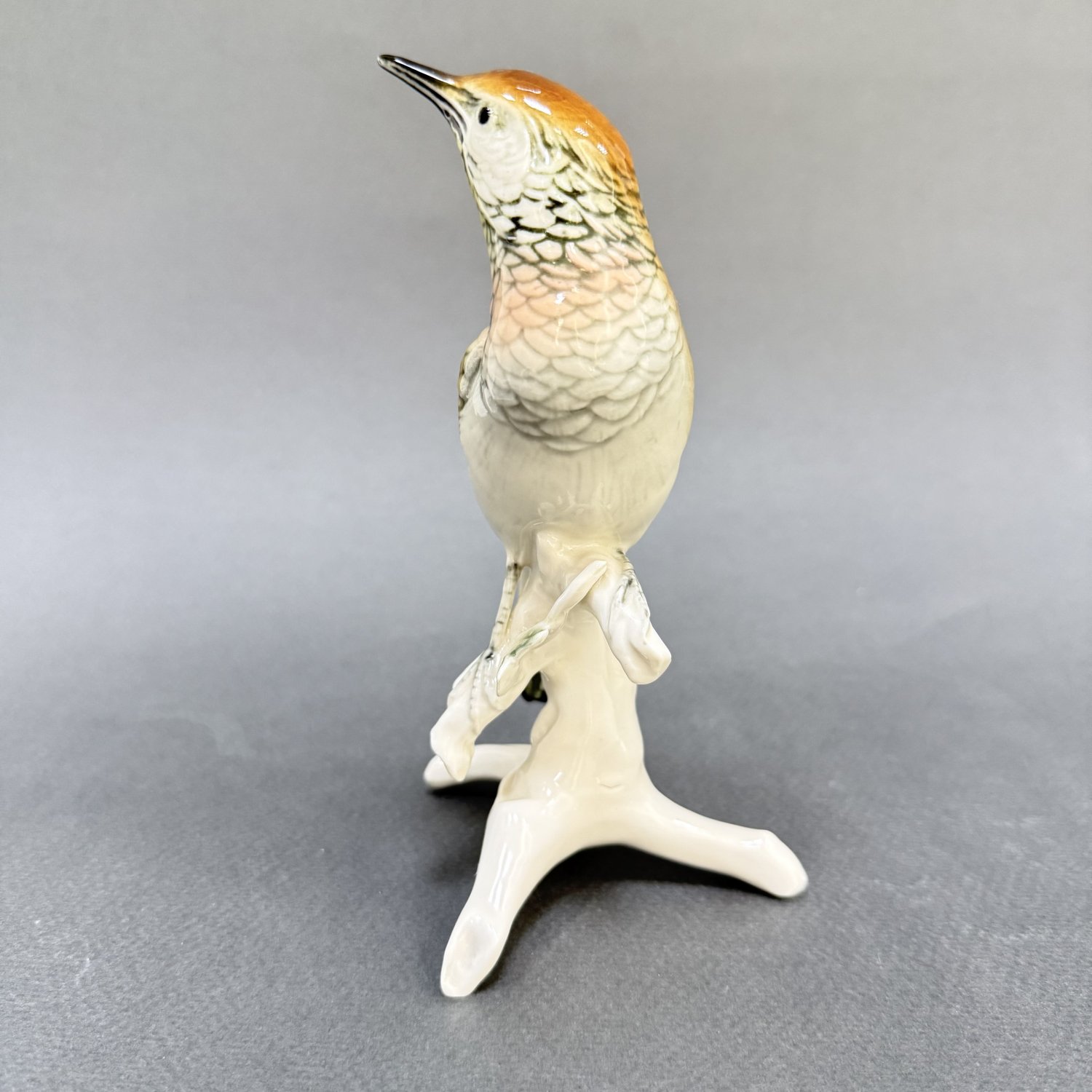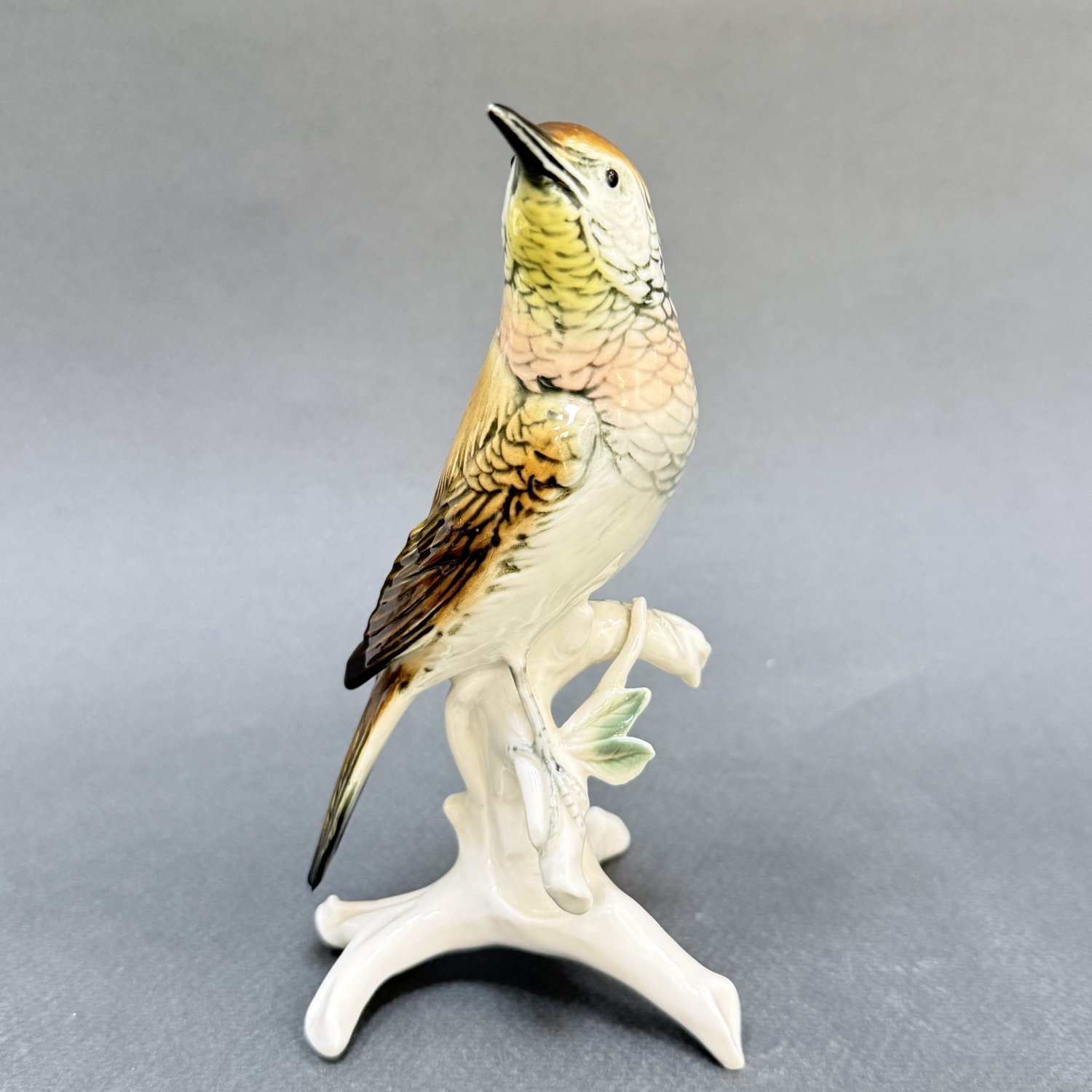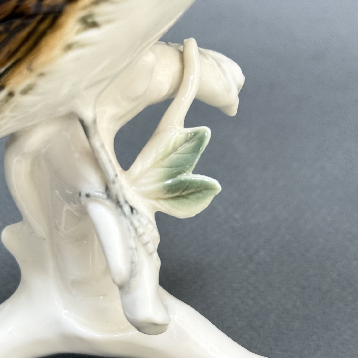 Коллекционная очень редкая фигурка "Соловей на ветке". Фарфор, полихромная подглазурная роспись. Германия, Волькштадт, Карл Энс. Клеймо синее, подглазурное. Размер: высота 16 см, длина 9,6 см, ширина 8,5 см.