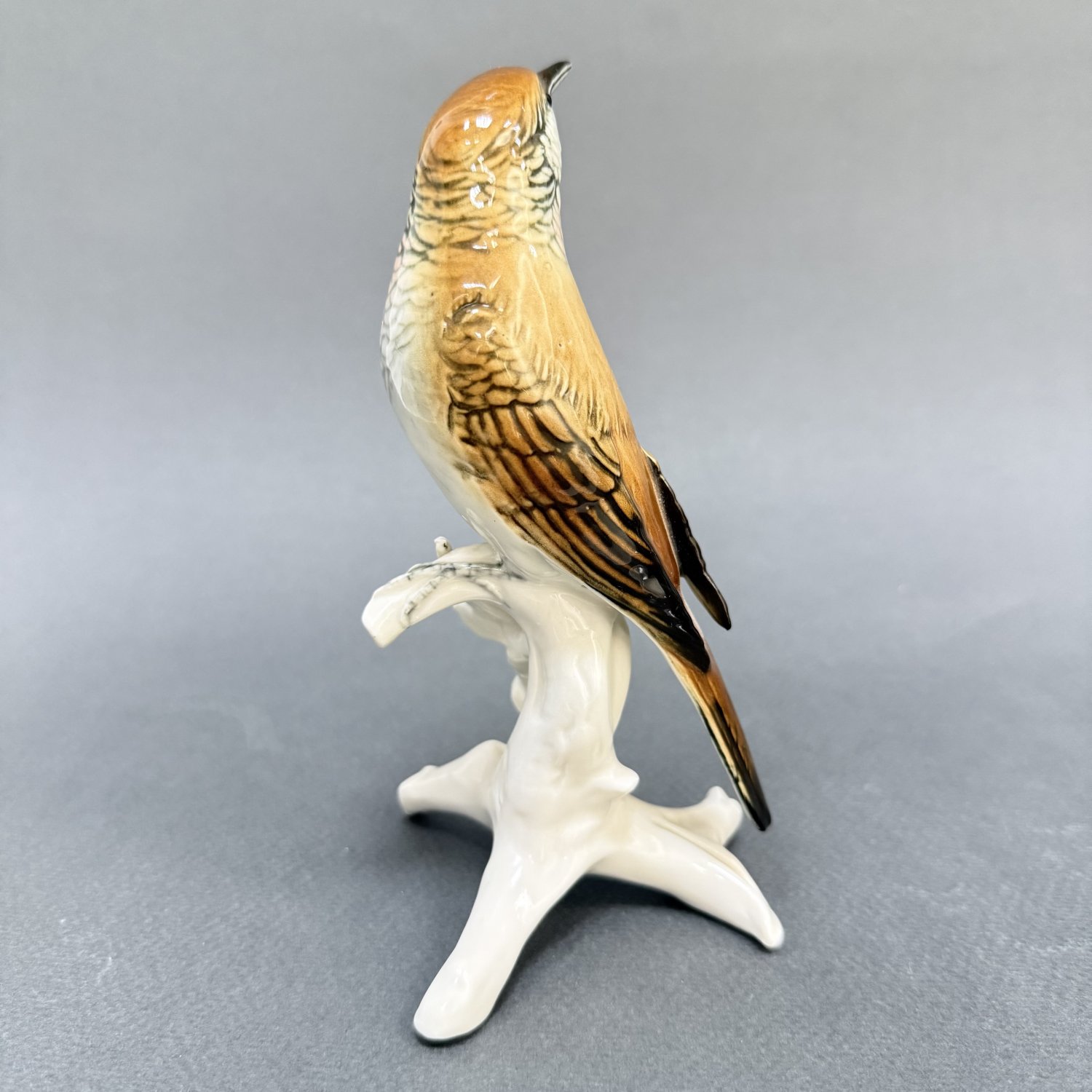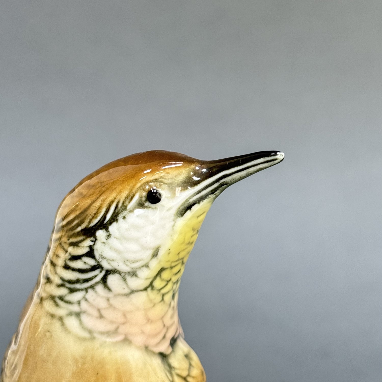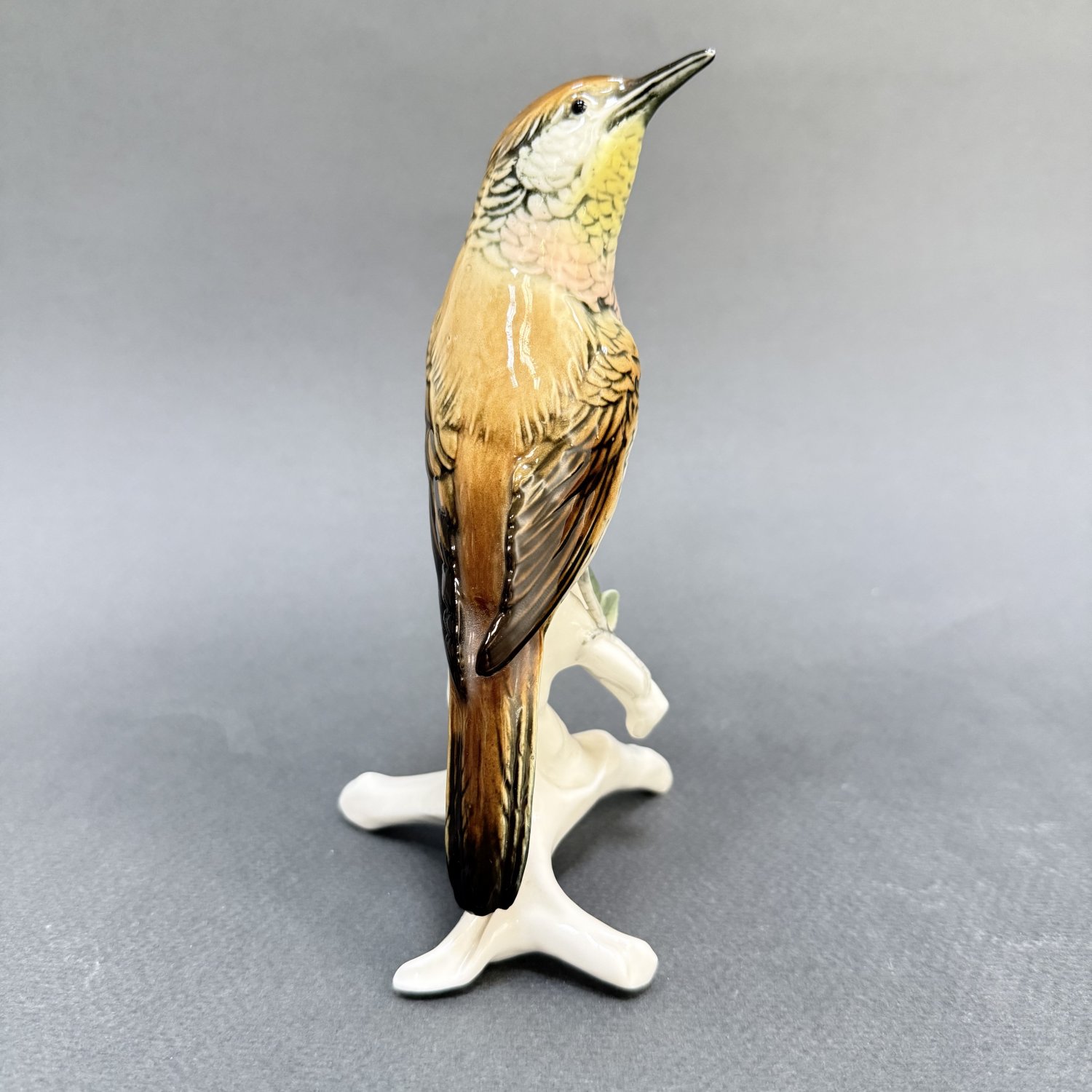 Коллекционная очень редкая фигурка "Соловей на ветке". Фарфор, полихромная подглазурная роспись. Германия, Волькштадт, Карл Энс. Клеймо синее, подглазурное. Размер: высота 16 см, длина 9,6 см, ширина 8,5 см.