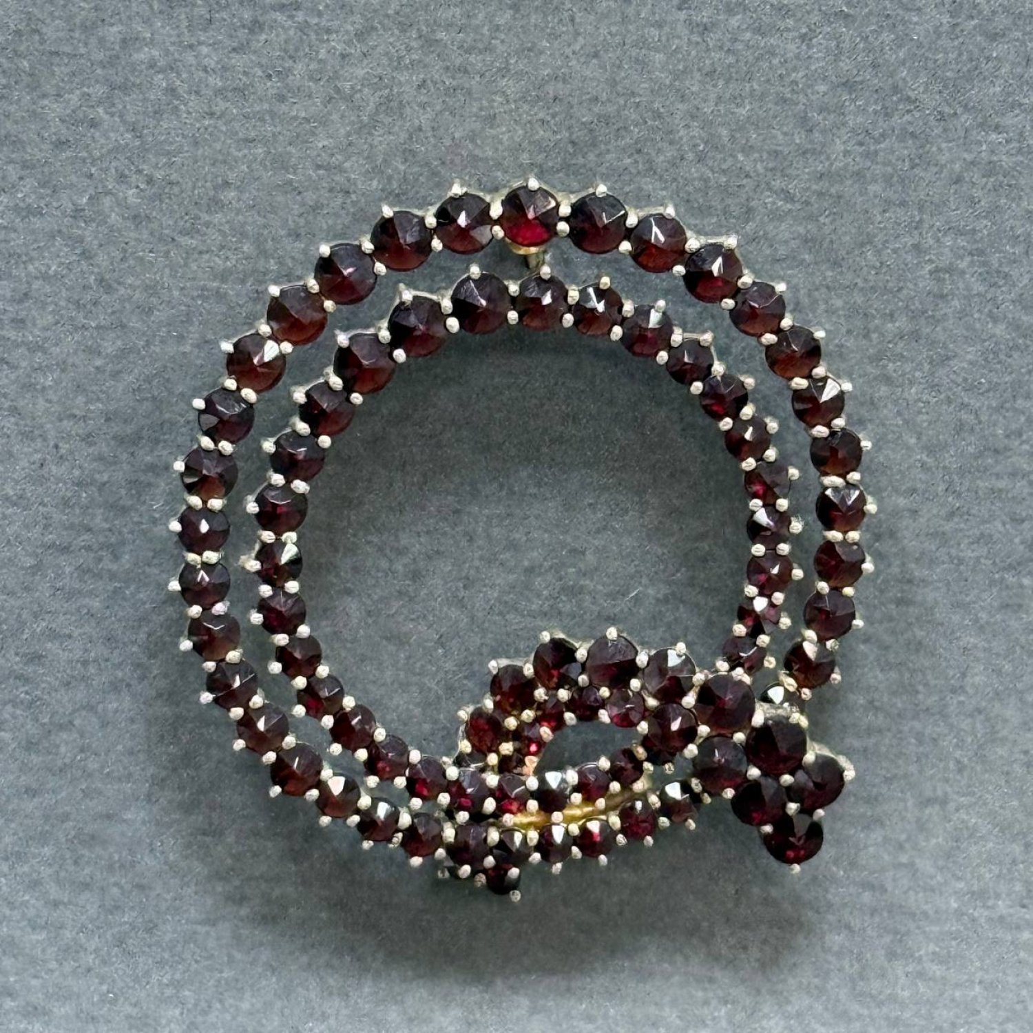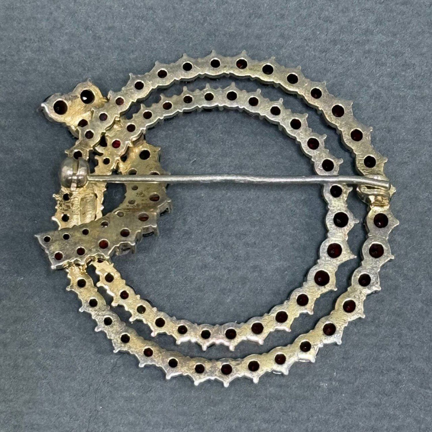 Брошь с гранатами,серебро с золочением 20век ,золочение ,диаметр 4см
