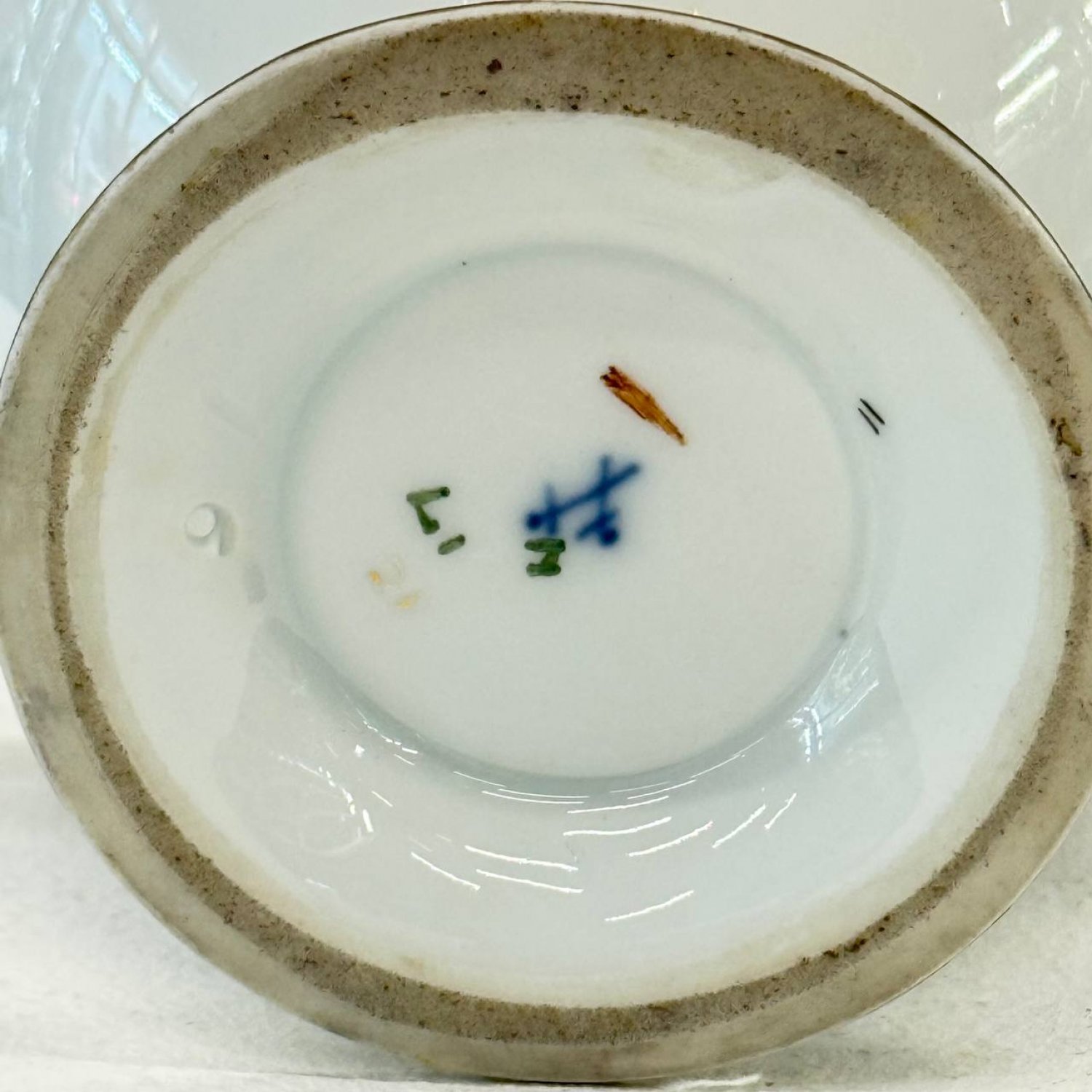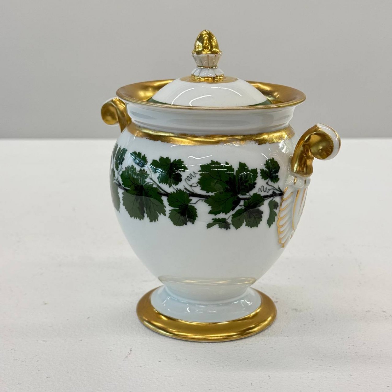 Сахарница Meissen начало 19 века Германия фарфор,роспись монохромная в зеленых оттенках в виде гирлянды из зеленой виноградной лозы и фигурных золоченых ручек .Золочение.Высокопрофессиональная реставрация сколов