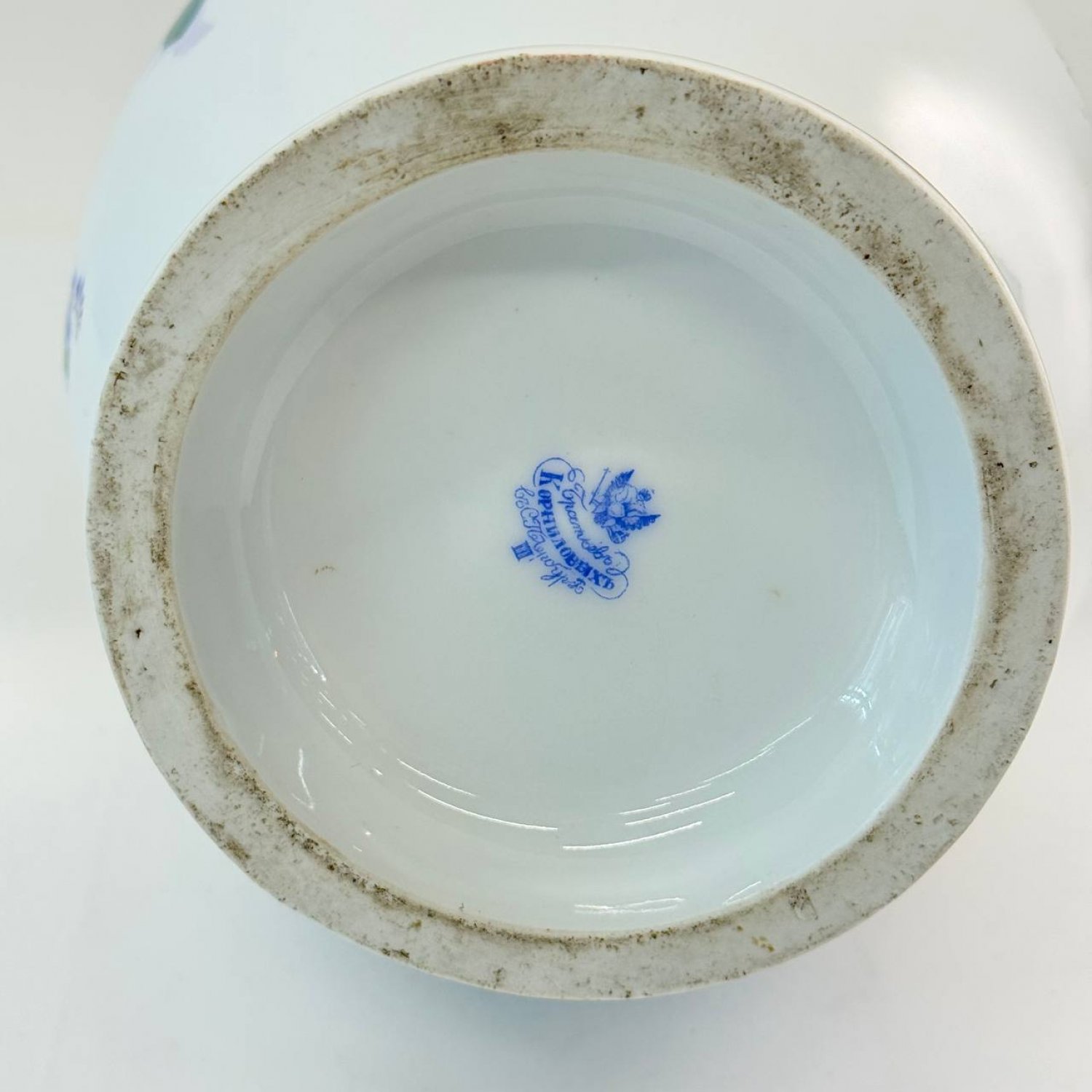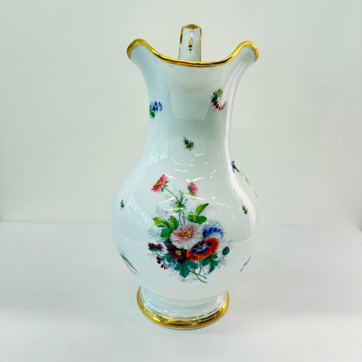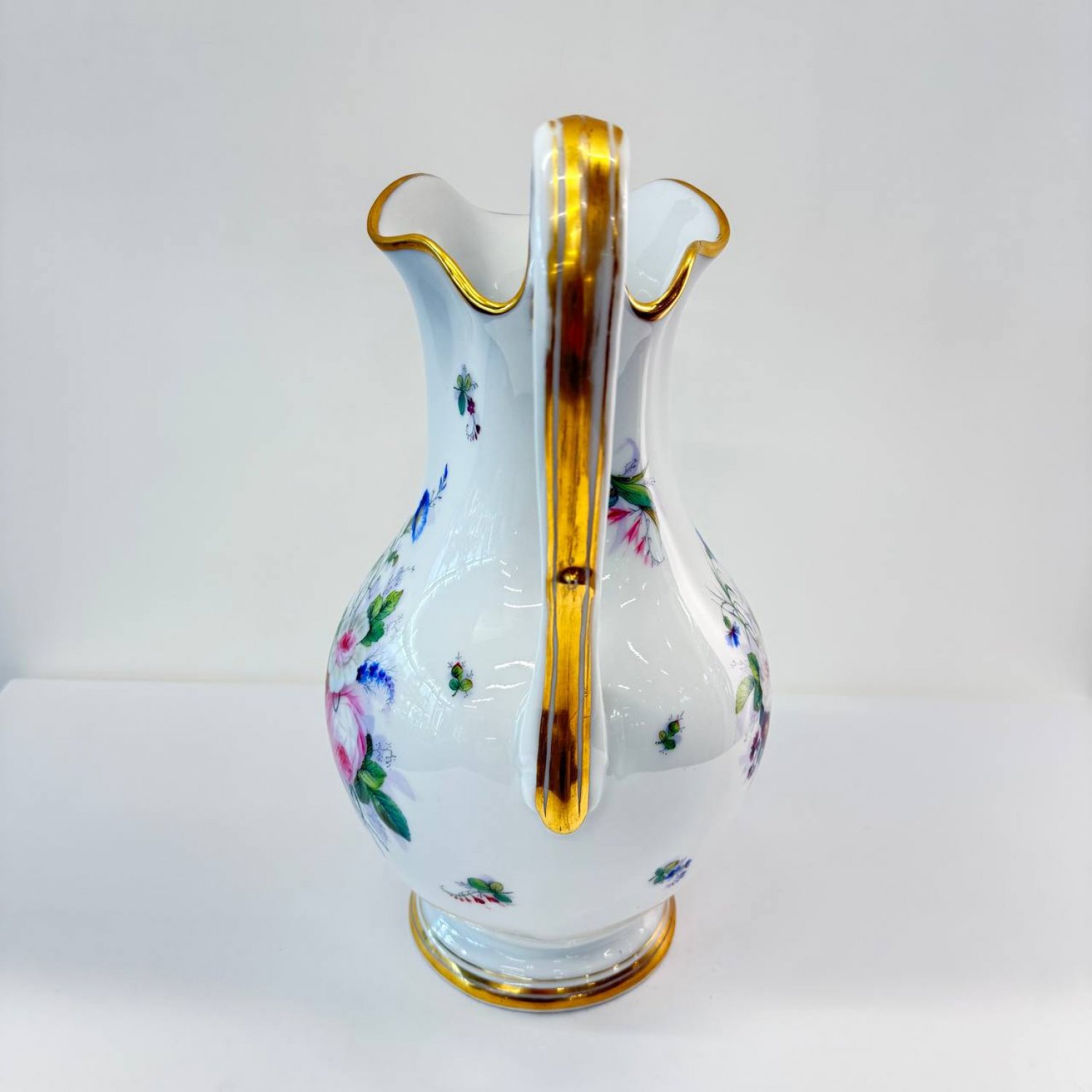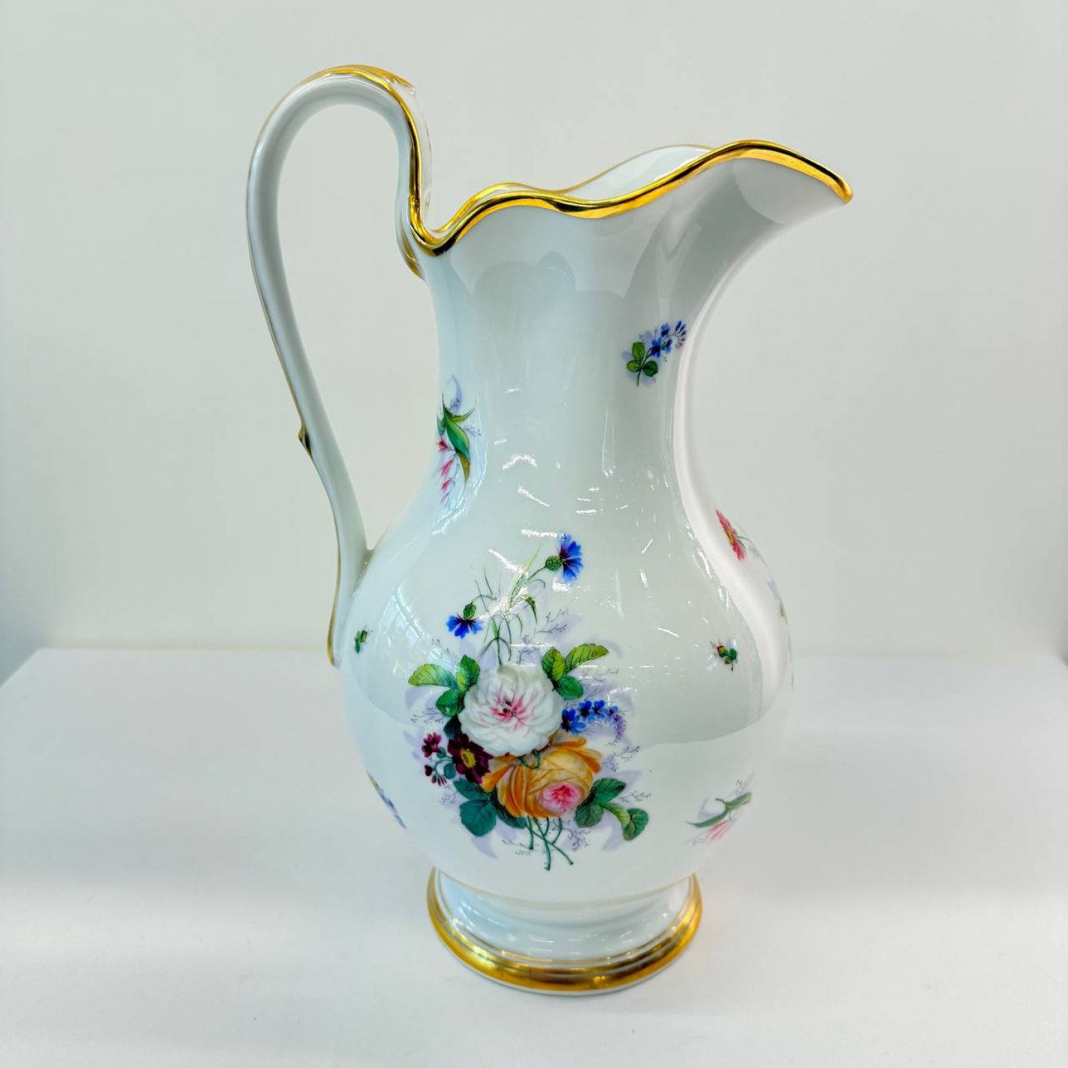 Большой старинный кувшин для воды, фабрика Братьев Корниловых ,1861-1884 гг, Россия, надглазурная полихромная роспись букеты цветов, золочение по ручке, золотая отводка. Размеры высота с ручкой 35 см, диаметр основания 12.5см, диаметр тулова максимальный -19 см, клеймо надглазурное синей краской