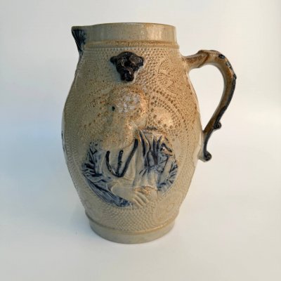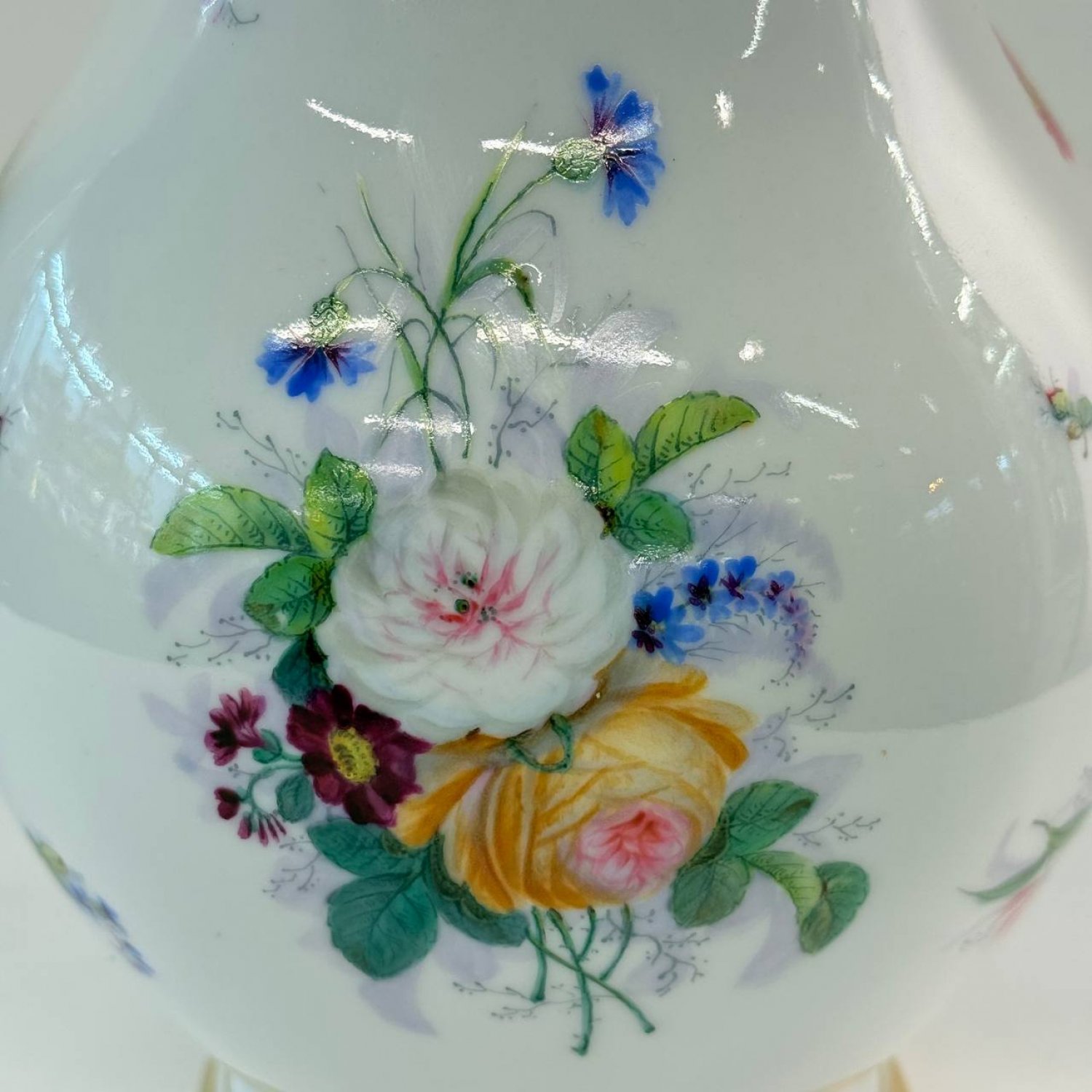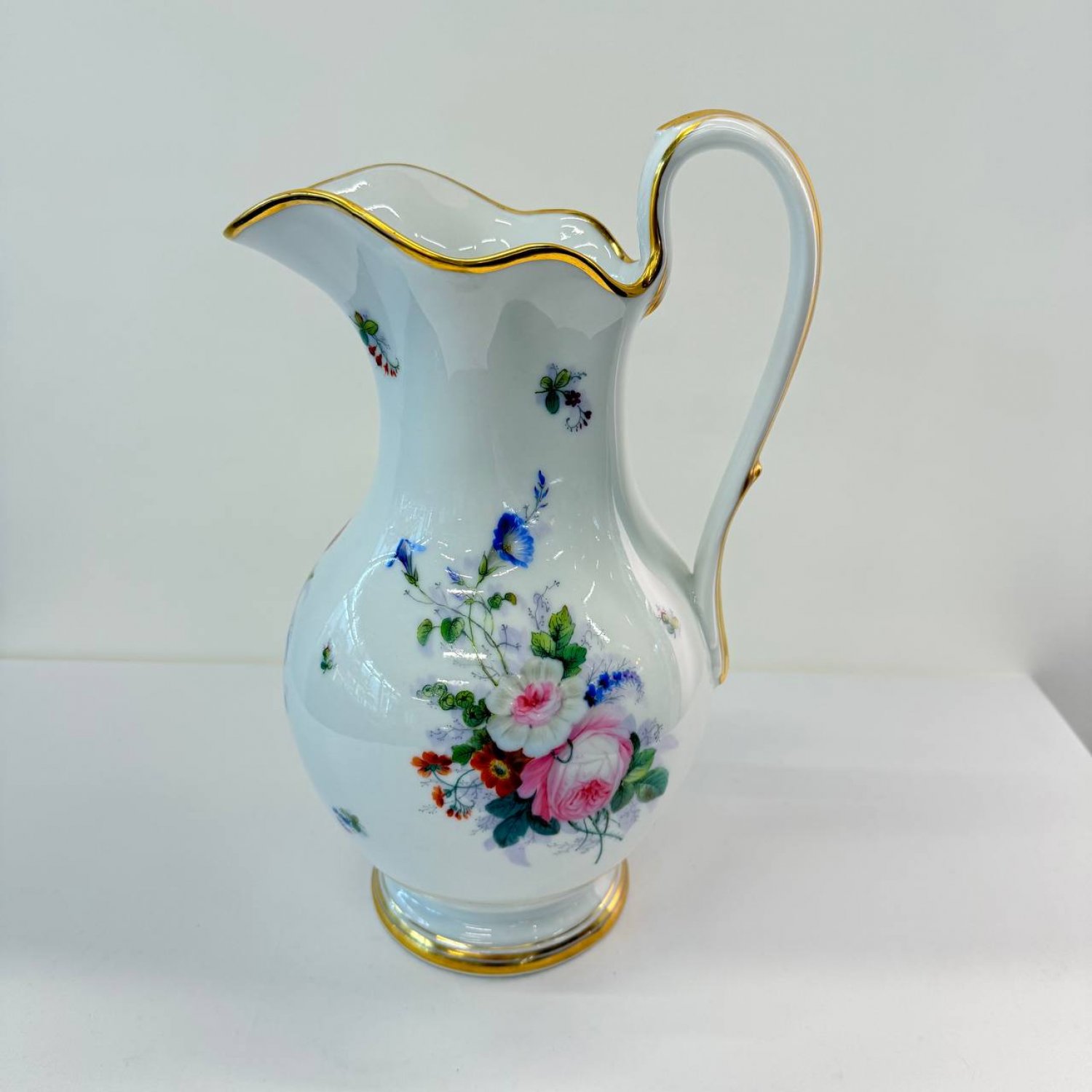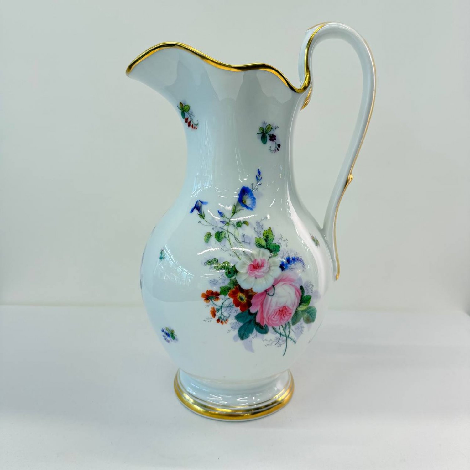 Большой старинный кувшин для воды, фабрика Братьев Корниловых ,1861-1884 гг, Россия, надглазурная полихромная роспись букеты цветов, золочение по ручке, золотая отводка. Размеры высота с ручкой 35 см, диаметр основания 12.5см, диаметр тулова максимальный -19 см, клеймо надглазурное синей краской