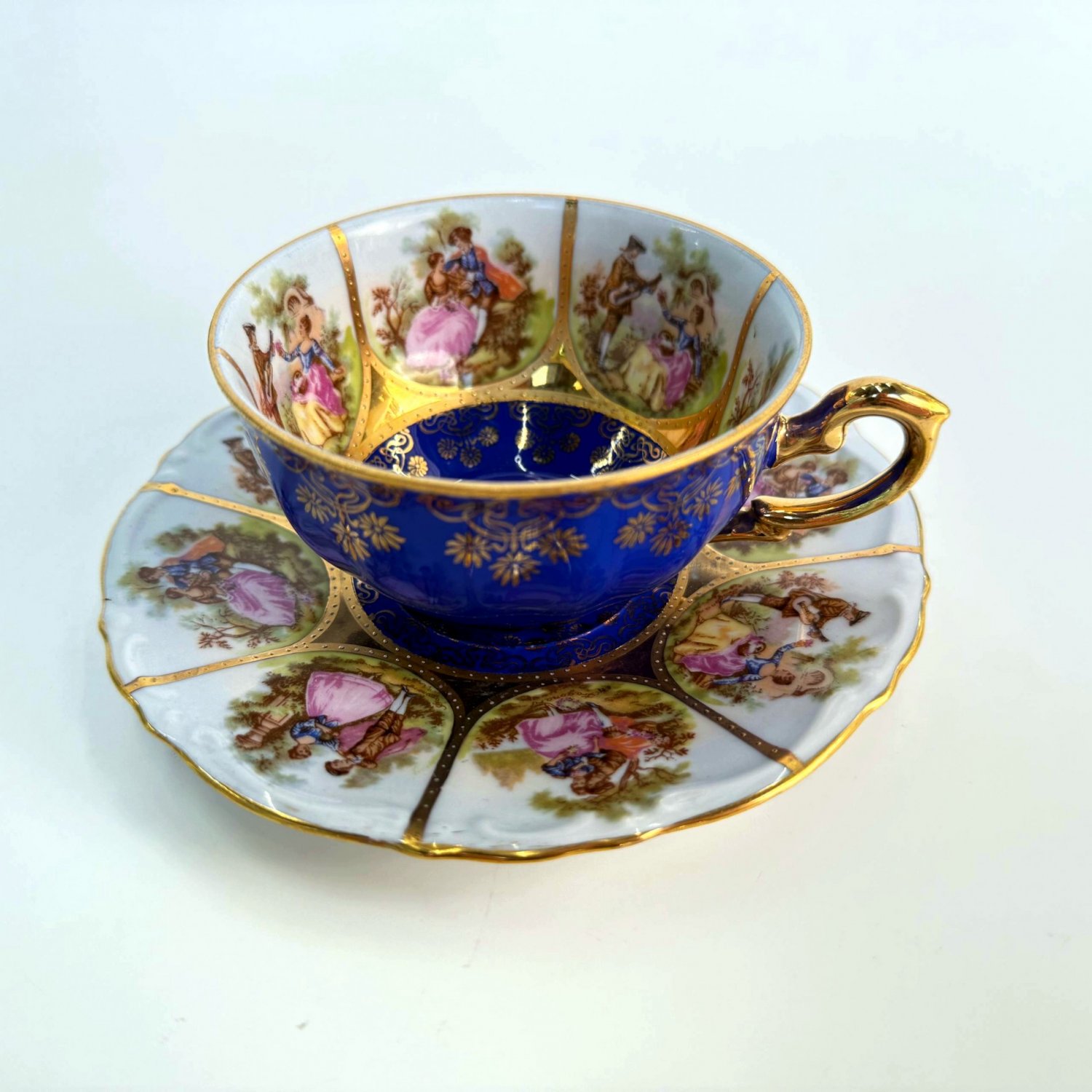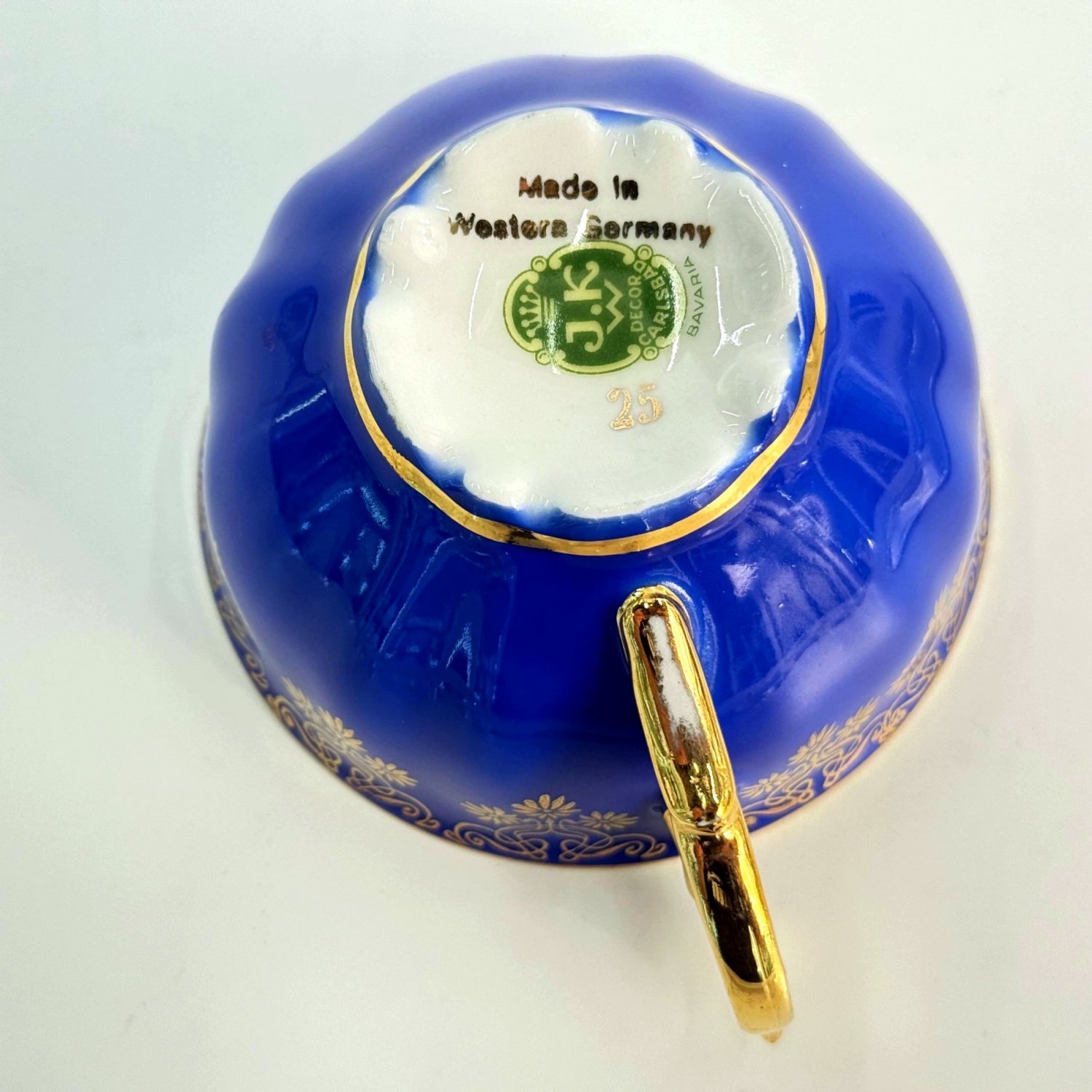 Фарфоровый чайный дуэт (чашка и блюдце) марки J.K. Decor Carlsbad Bavaria, произведённый в Западной Германии (Western Germany) — время выпуска ориентировочно 1950-е–1970-е годы.