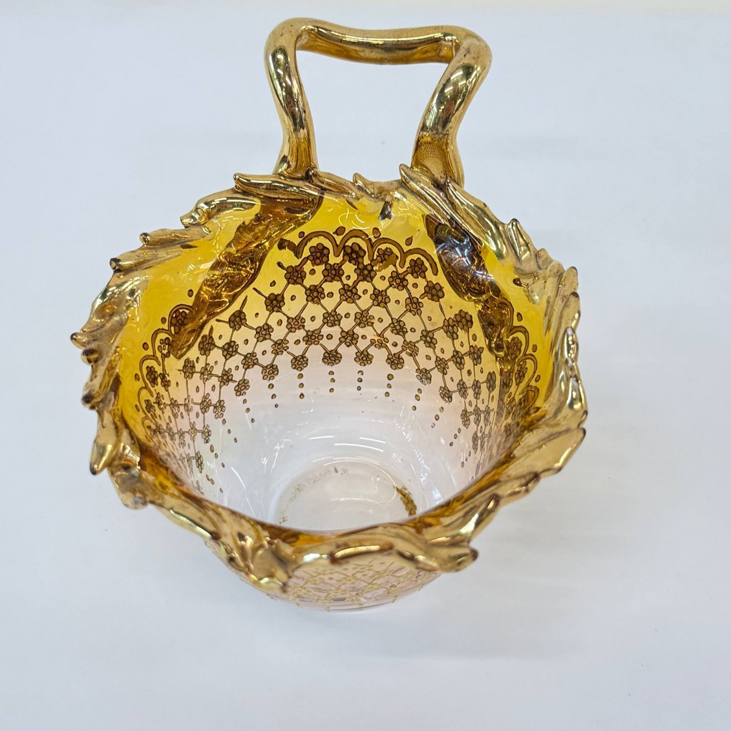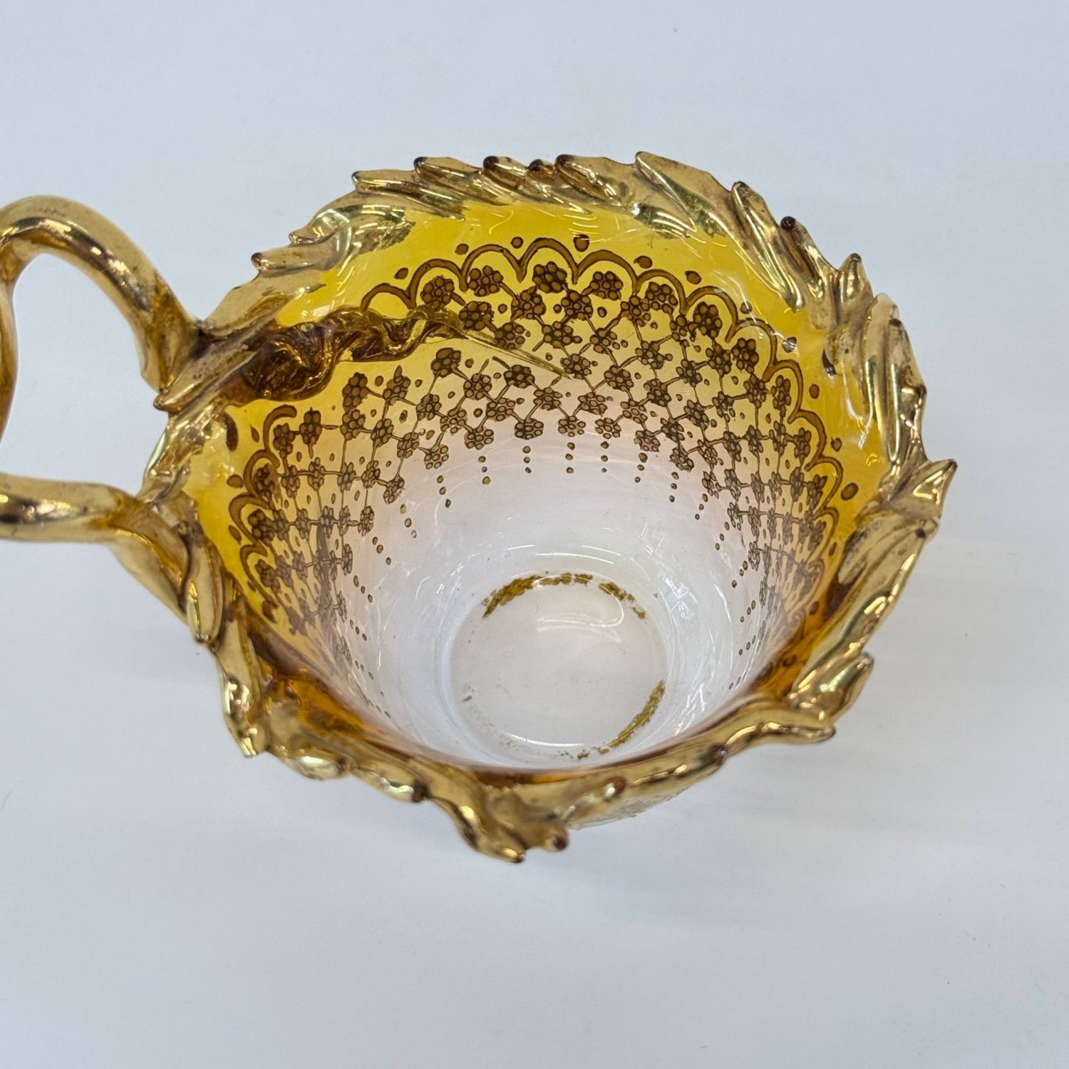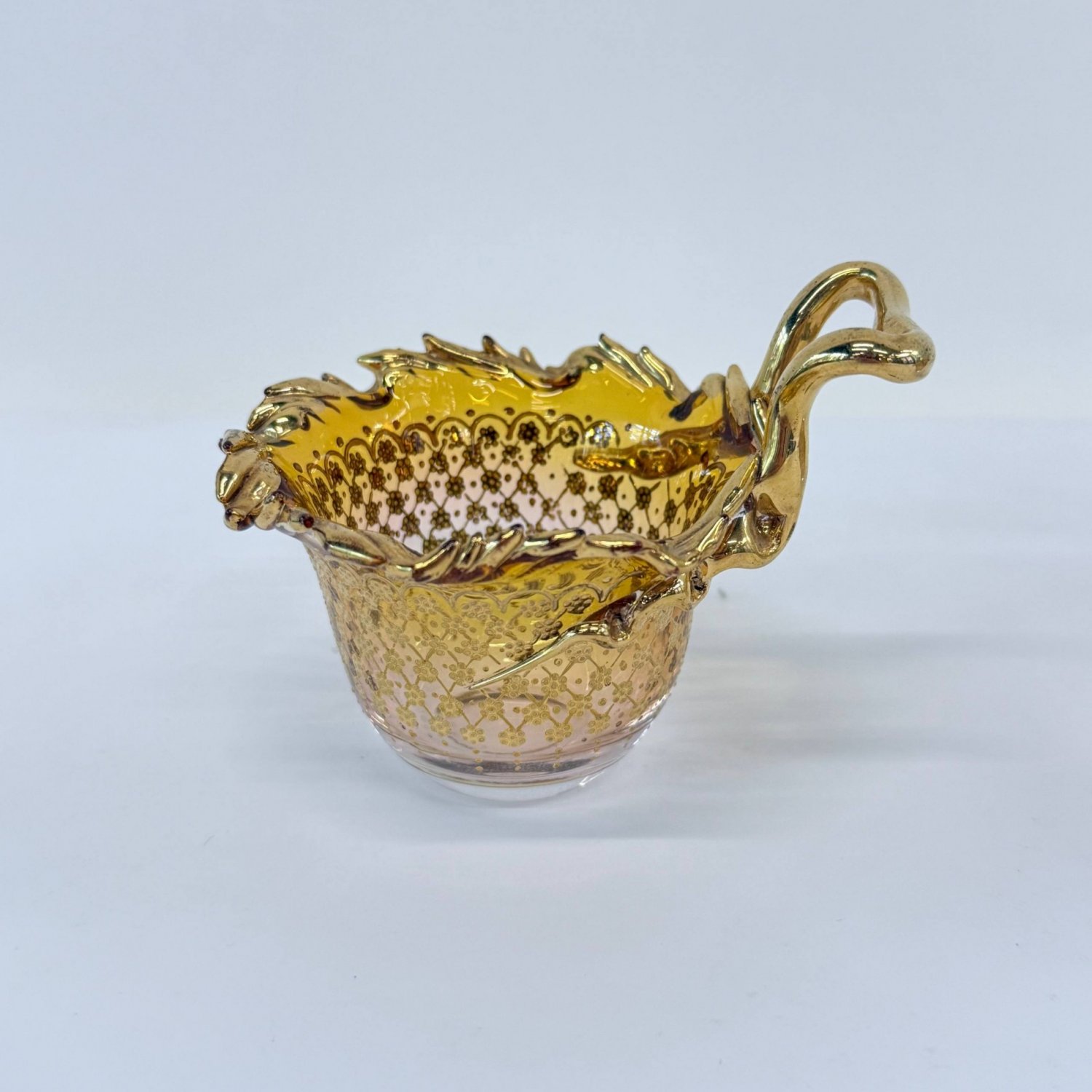 Вазочка с золоченой фигурной ручкой, Богемия , 1900. золочение, орнамент - роспись золотыми пастами