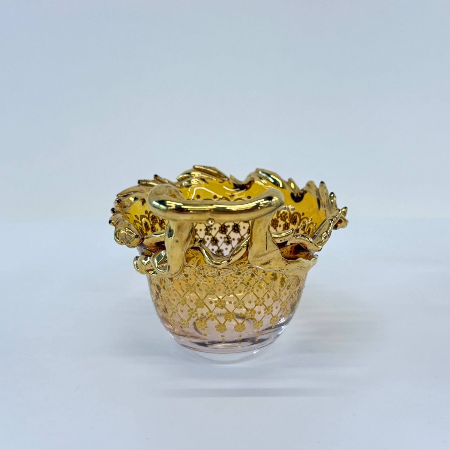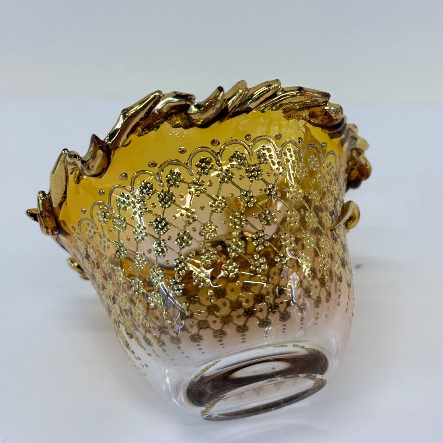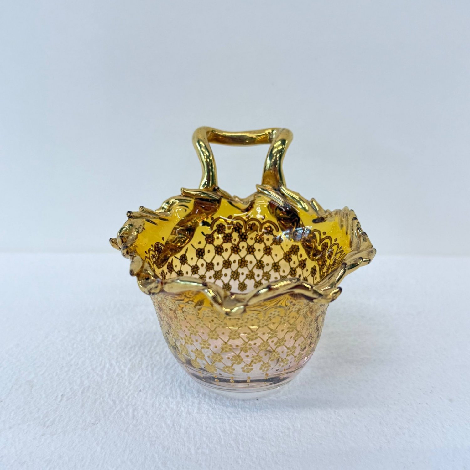 Вазочка с золоченой фигурной ручкой, Богемия , 1900. золочение, орнамент - роспись золотыми пастами