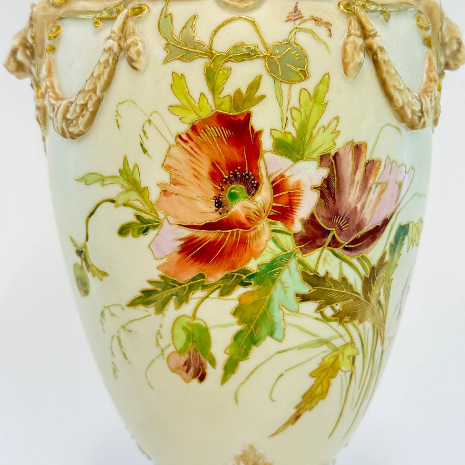 Старинная ваза с живописными  цветами, золочение,  Англия, Royal Worcester, 1890е гг.