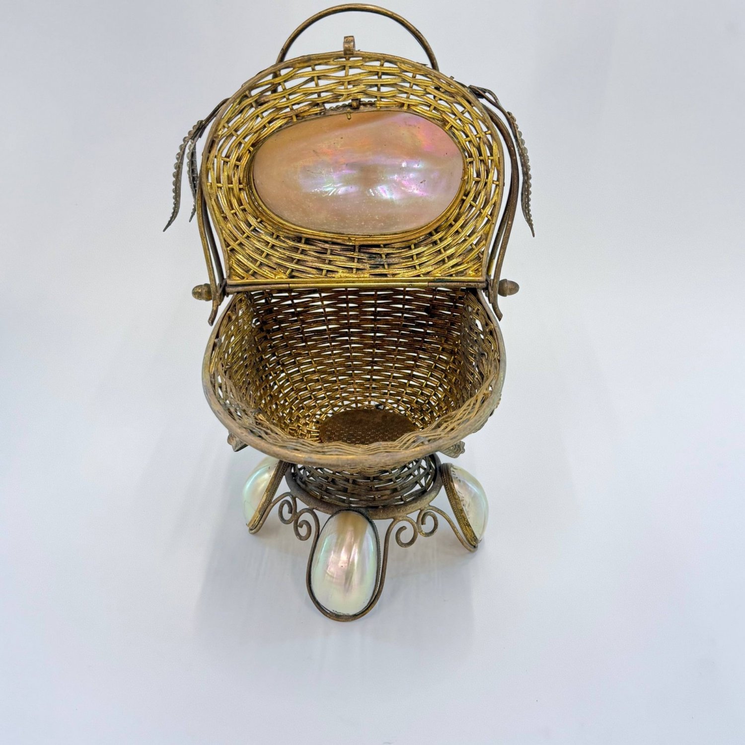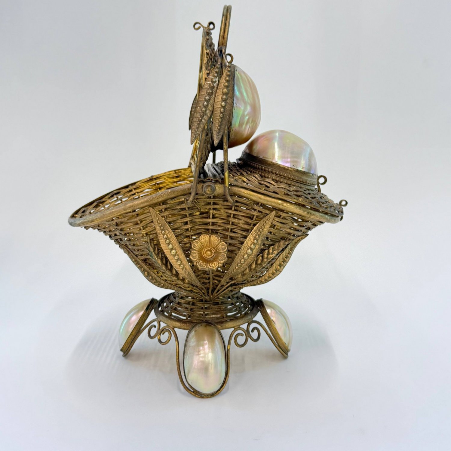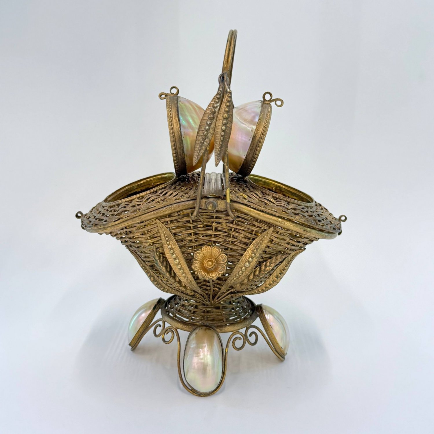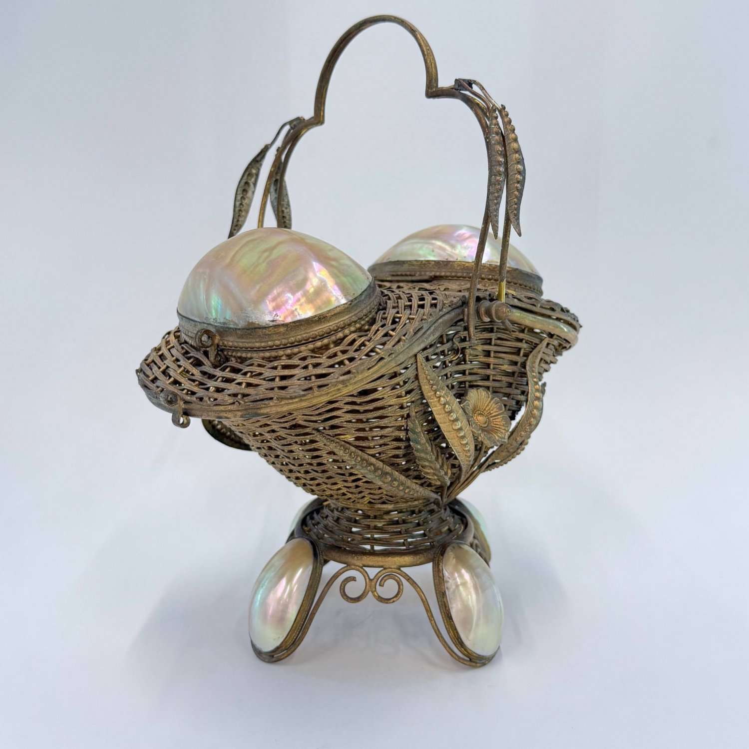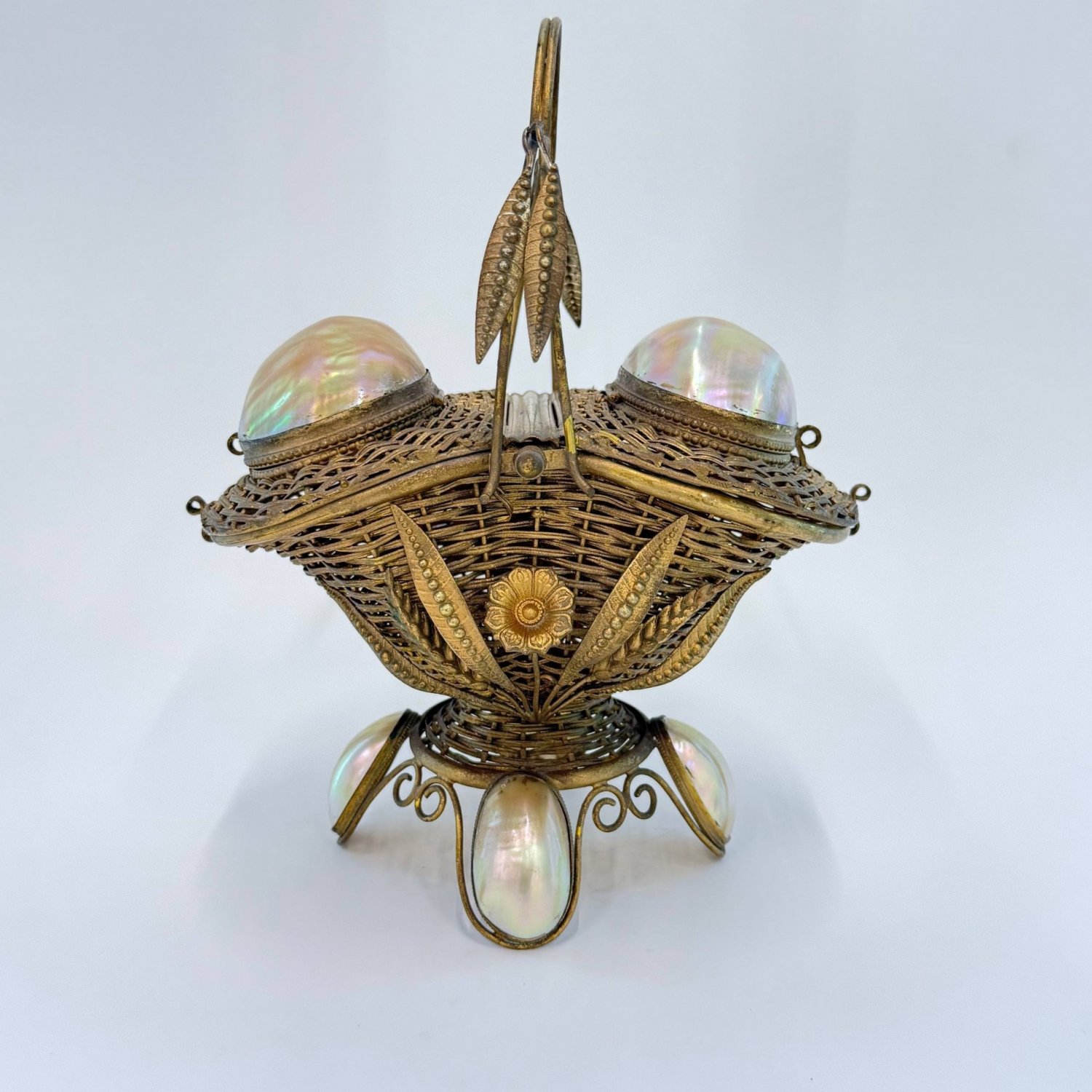 Ваза в виде корзины с двумя крышками и ручкой в технике филигрань, золочение, Palais Royal, вставка из перламутра.