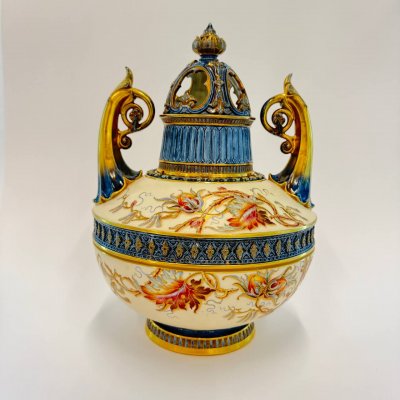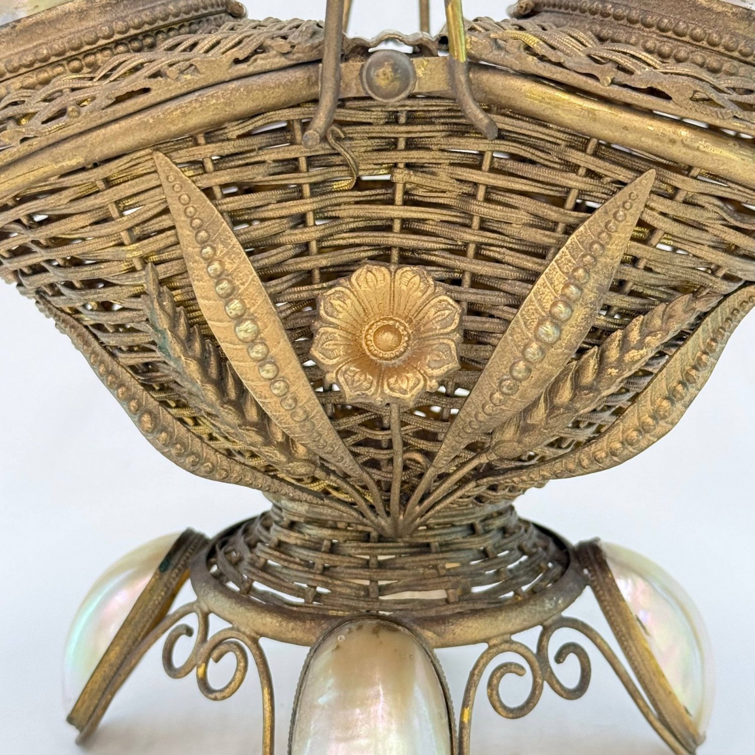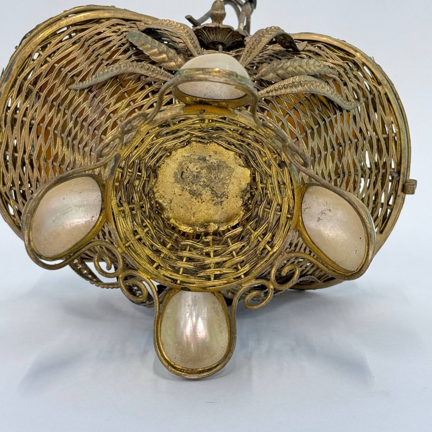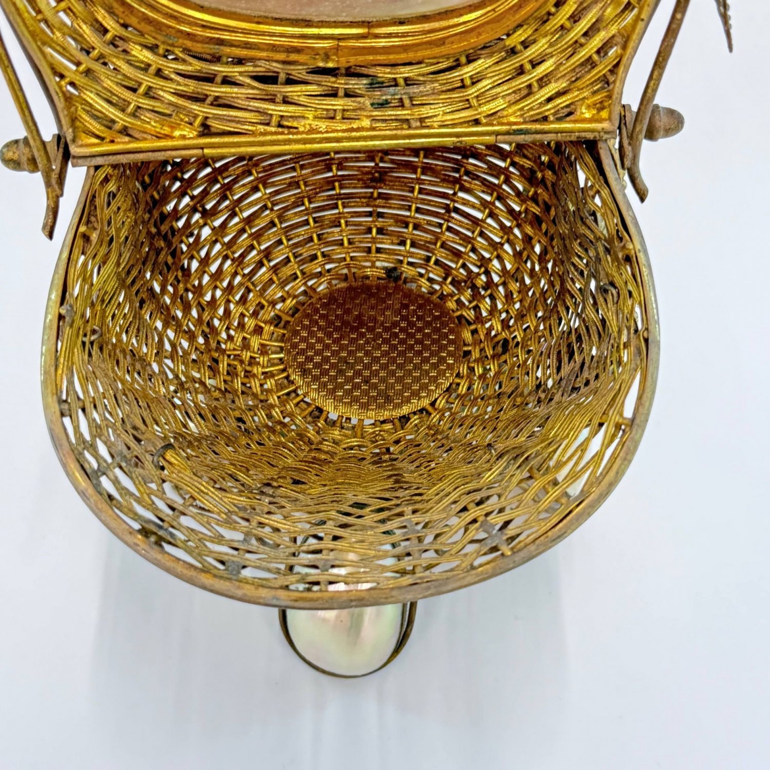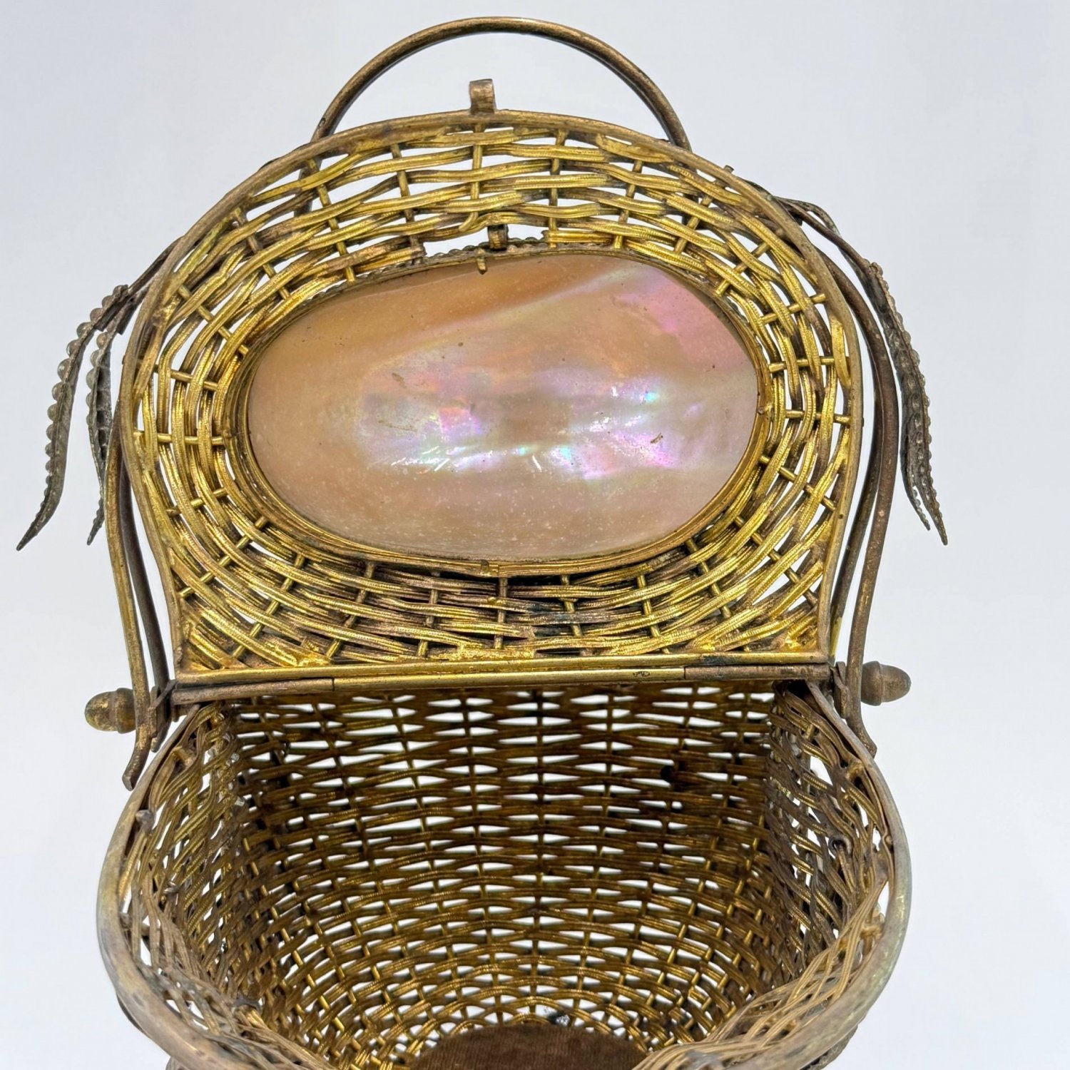 Ваза в виде корзины с двумя крышками и ручкой в технике филигрань, золочение, Palais Royal, вставка из перламутра.