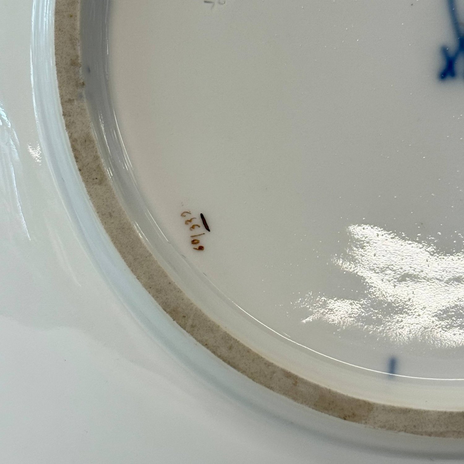 Оригинальный "мейсоновский" дизайн, сочетание белоснежного фарфора, натурального темно-синего кобальта, ярко выраженного рельефного орнамента и цветочной рукописной росписи в центре блюда. Орнамент покрыт тонким слоем золотой эмали