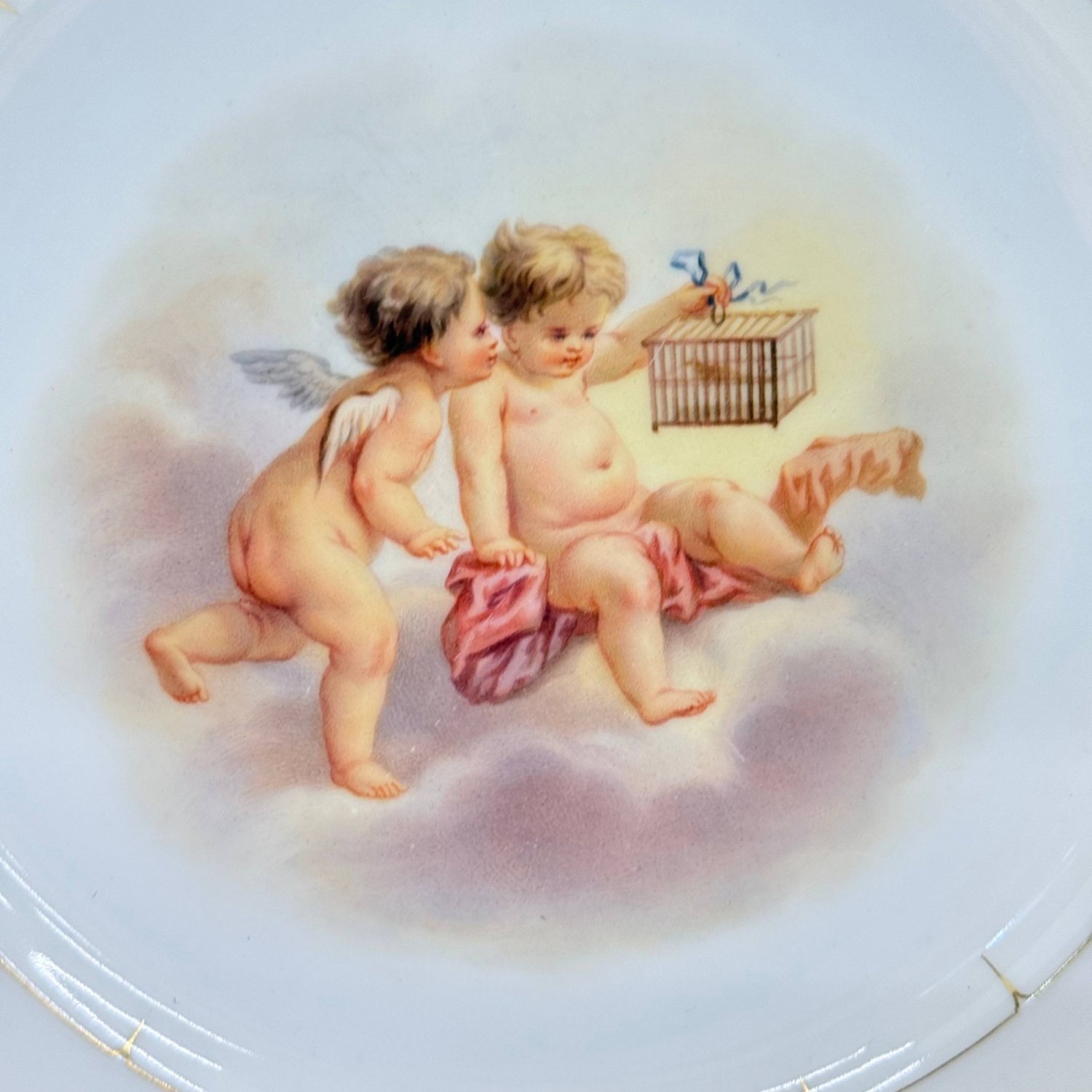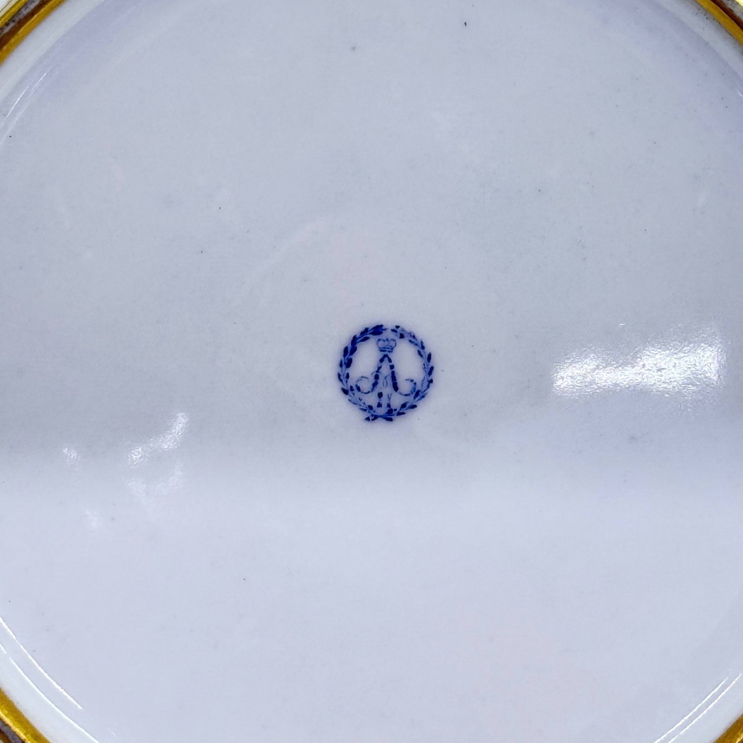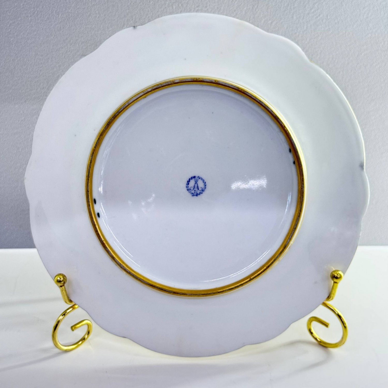 Тарелка, из сервиза для великого князя Александра Александровича, будущего императора Александра III. Надглазурная полихромная роспись. Марка: голубым штампом надглазурно «АII»под короной. Размеры: диаметр 22,5 см высота 2,5 см