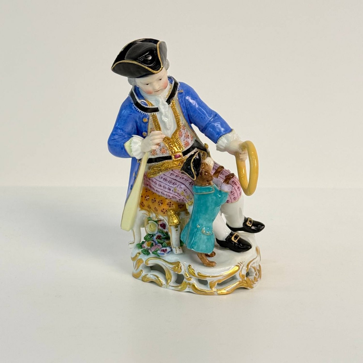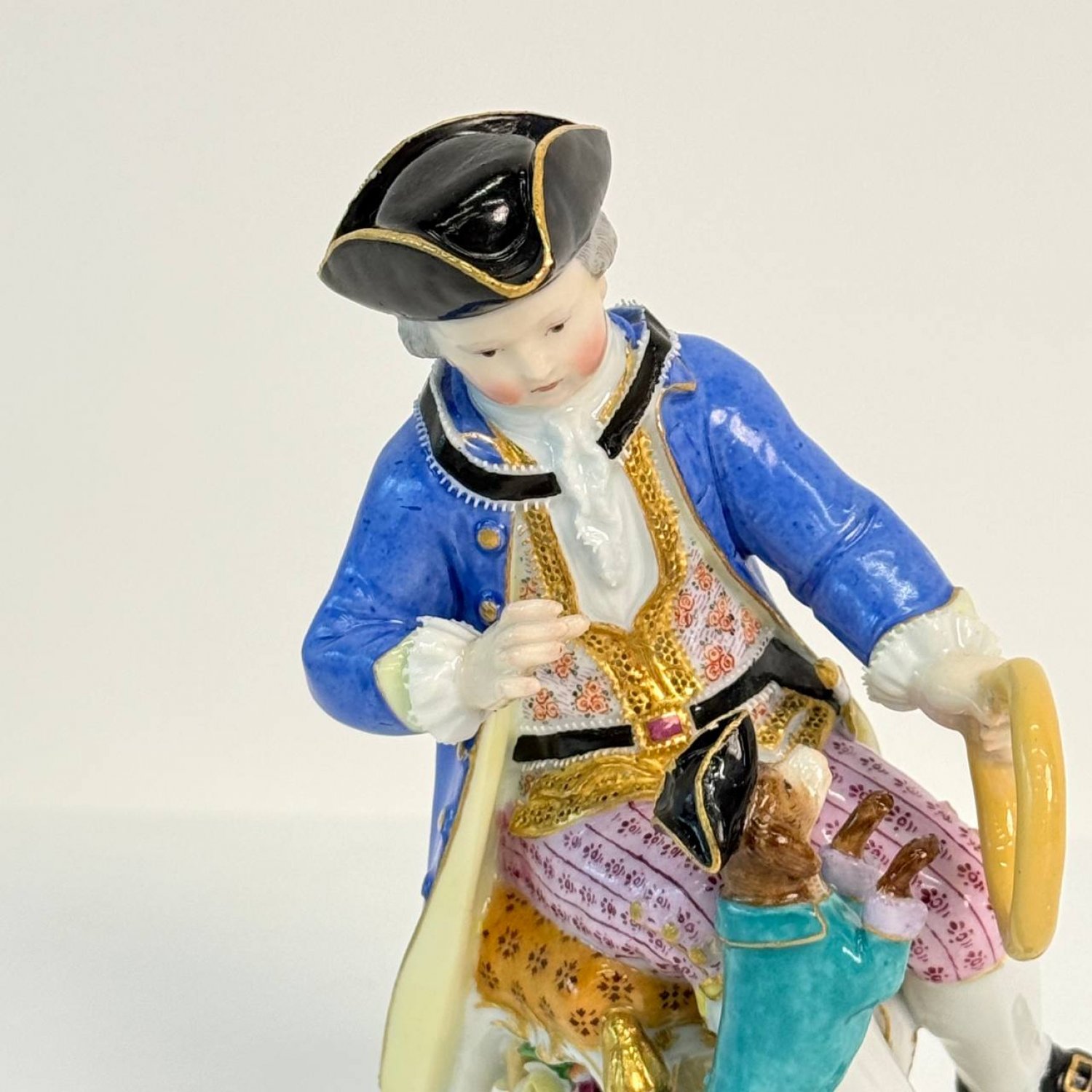 Фигурка выполнена из  фарфора с полихромной росписью и элементами золочения, Meissen, Германия. подглазурное синее клеймо в виде скрещенных мечей и номер модели.  Подобные модели с мальчиками и собаками были популярны в Мейсене и часто ассоциируются с такими скульпторами, как Иоганн Иоахим Кендлер (Johann Joachim Kaendler) или Иоганн Фридрих Эберляйн (Johann Friedrich Eberlein). Существуют различные вариации этой темы, включая фигуры пастухов и садовников.